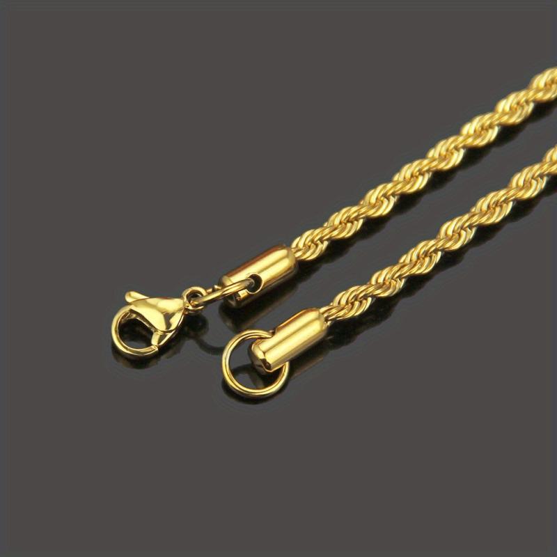 Add a touch of elegance to your outfit with this stainless steel twist chain necklace. The golden color adds a chic touch to any look, making it a versatile accessory for any occasion.