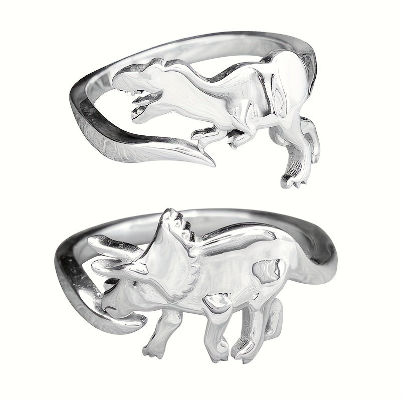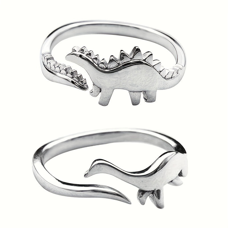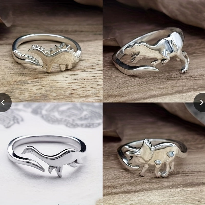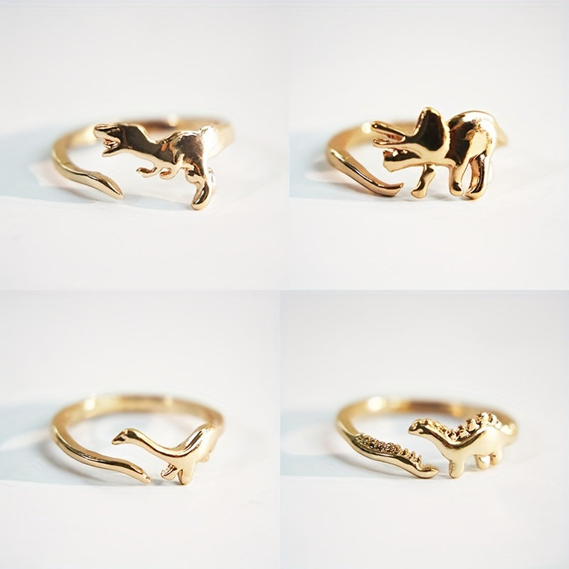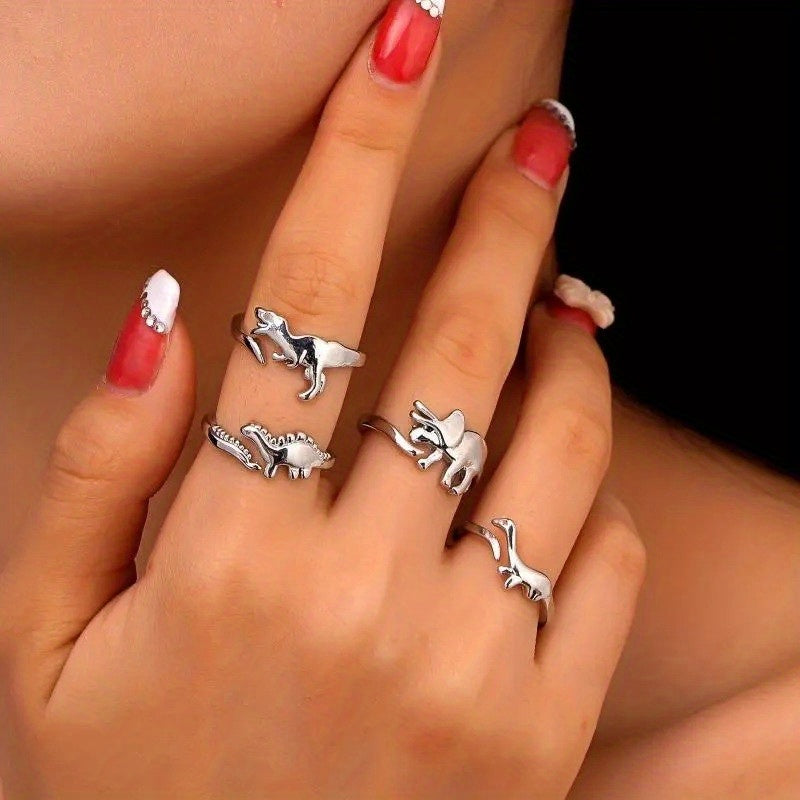 This set includes 4 alloy rings featuring dinosaur designs. Perfect for adding a touch of whimsy to your outfit.
