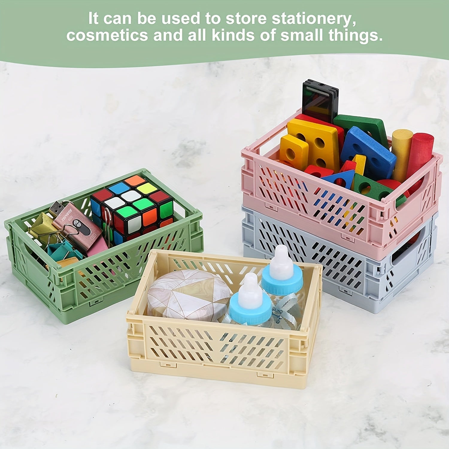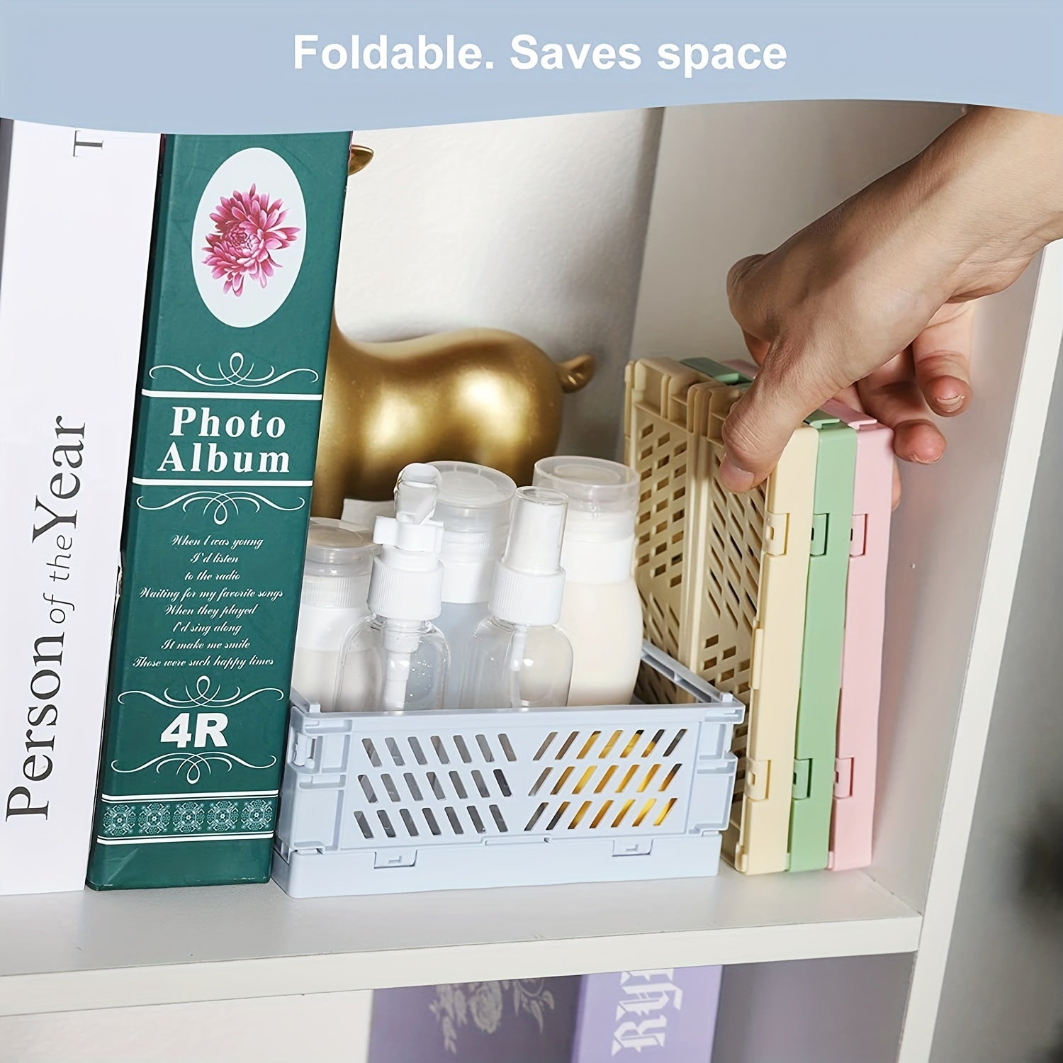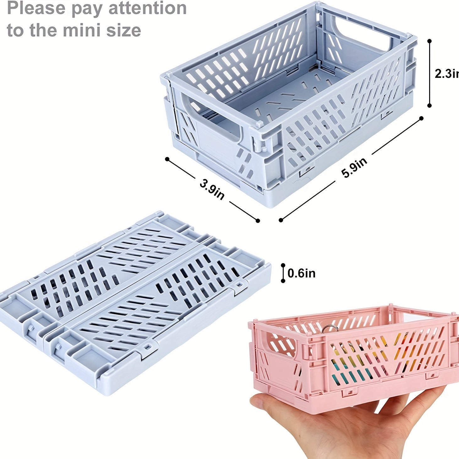 These durable and reliable folding storage bins are perfect for home and bathroom storage. Each basket measures 5.9 x 3.8 x 2.2 inches.
