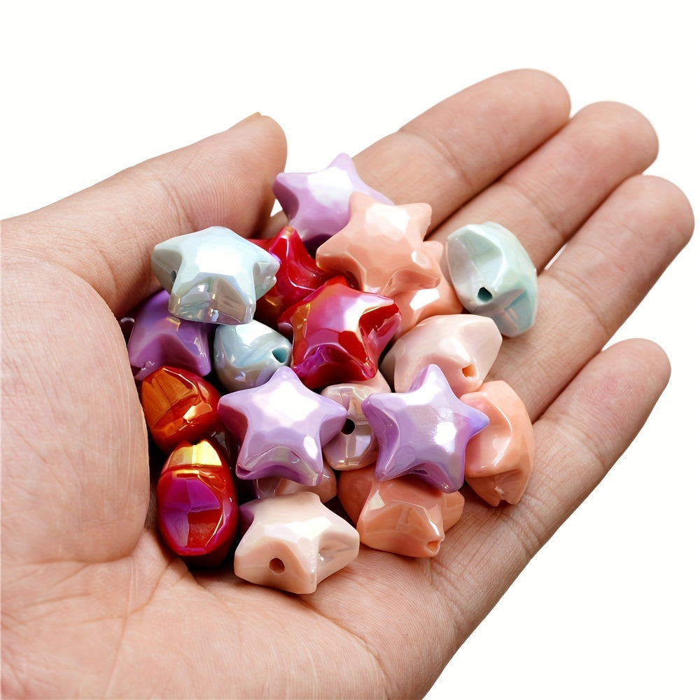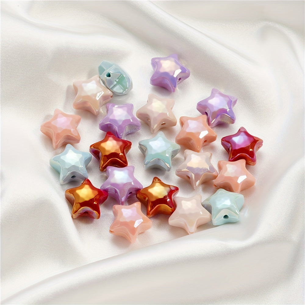 These colorful star-shaped acrylic beads are perfect for creating your own earrings, bracelets, necklaces, and more. Add a touch of fun and creativity to your accessories with these five-pointed star spacer beads.