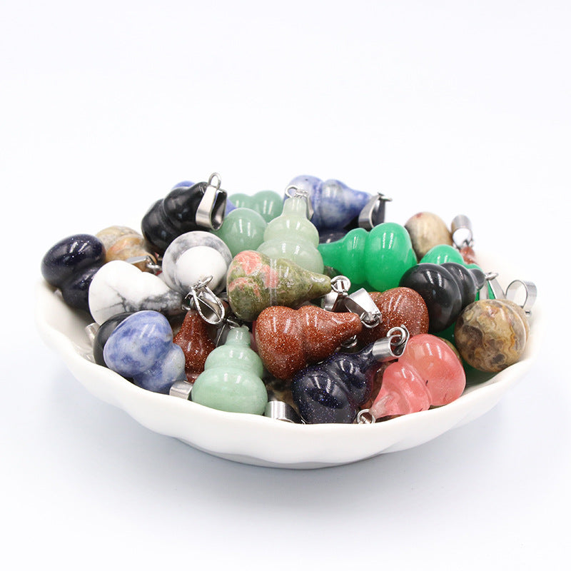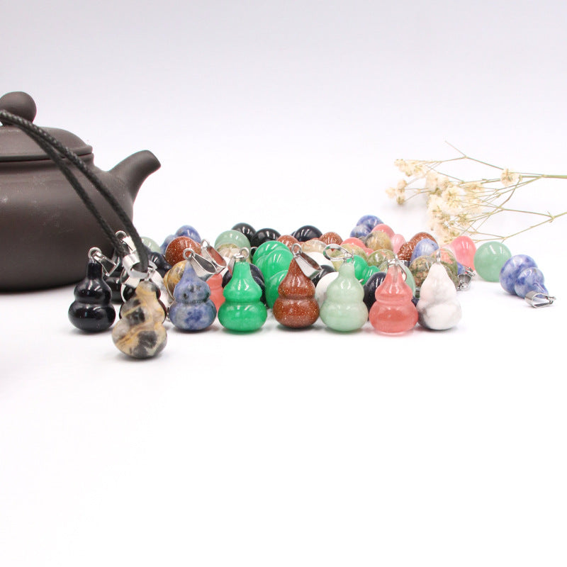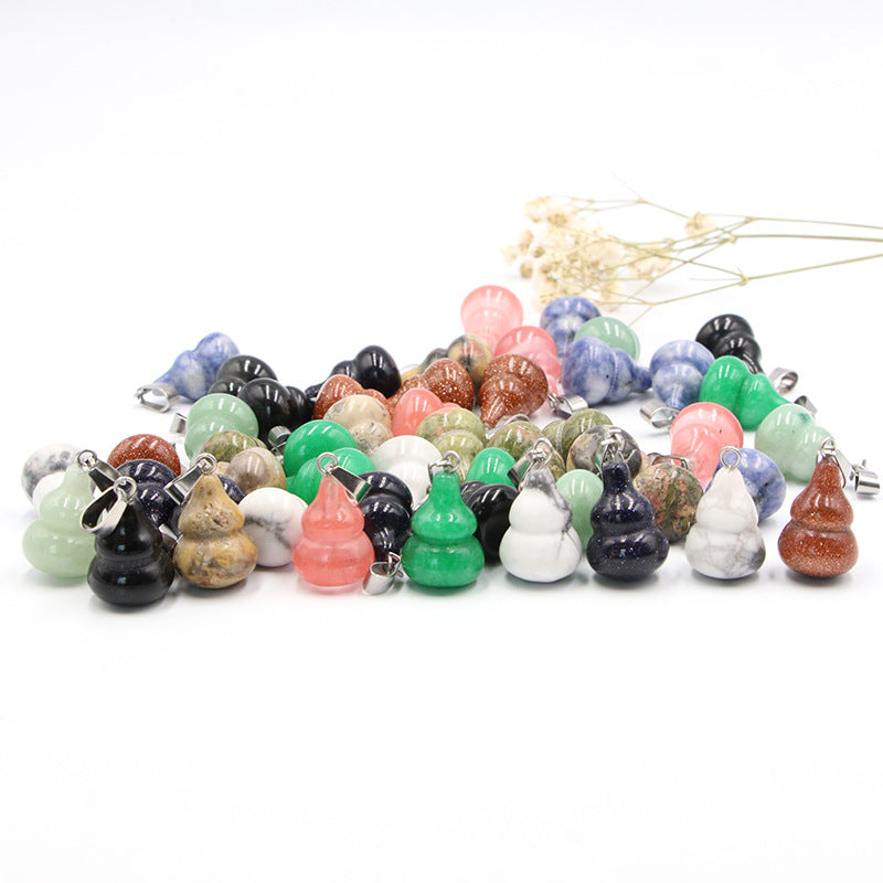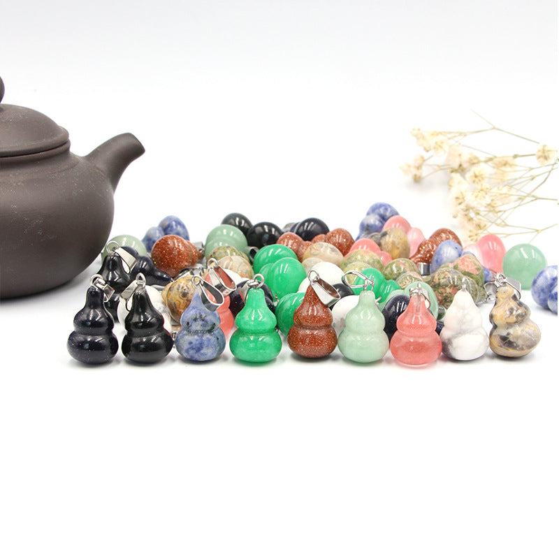 Create unique necklaces and bracelets with these 4 random natural crystal gourd shaped pendants. Perfect for jewelry making enthusiasts and crafters.