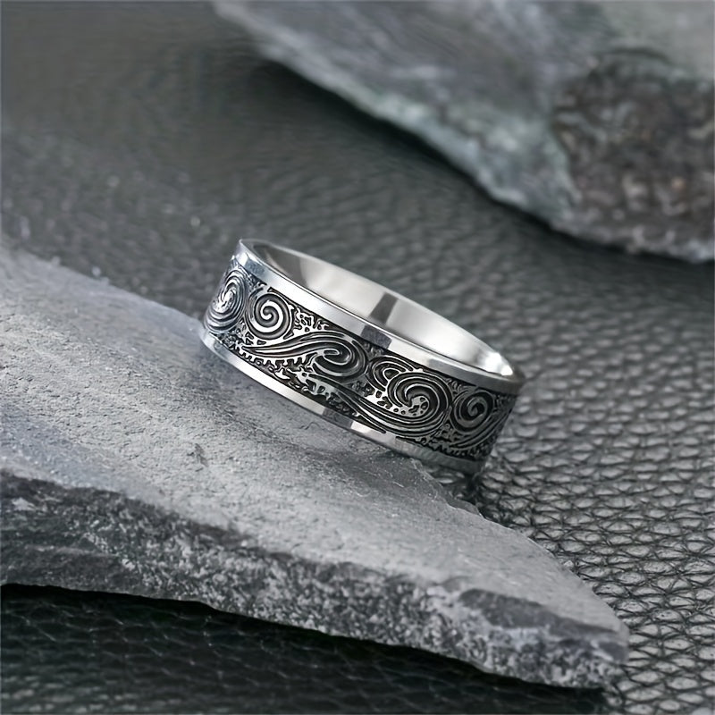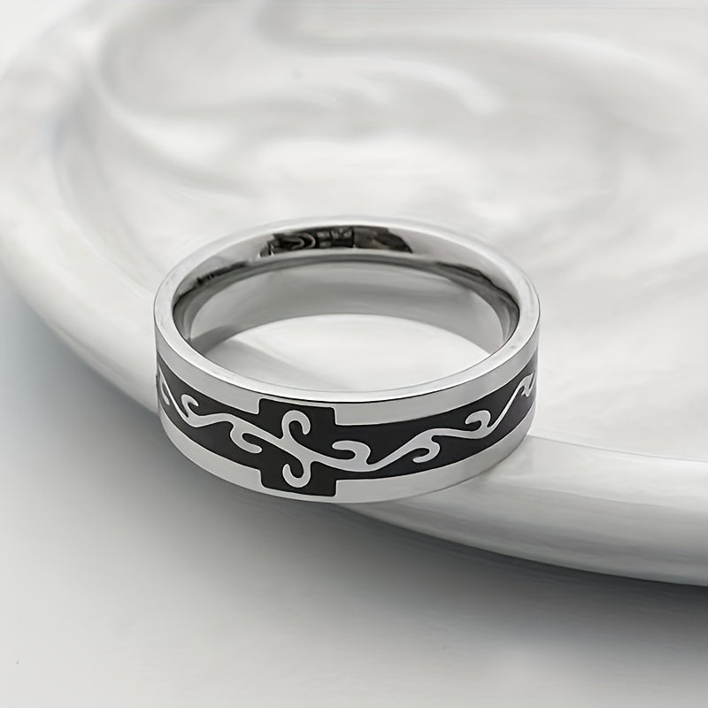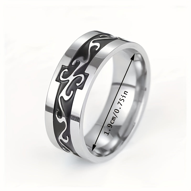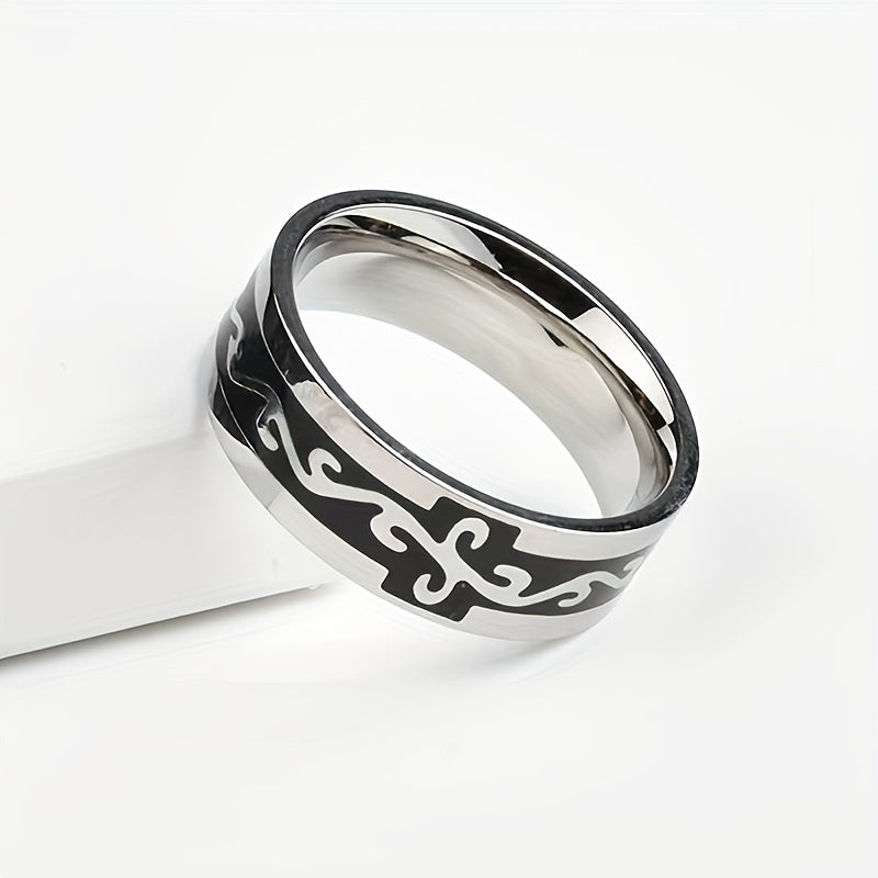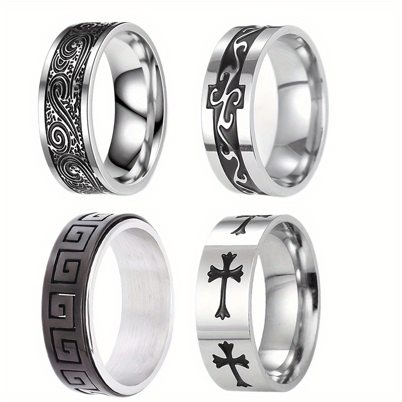 This set includes 4 stainless steel rings with unique flame and cross wall patterns, perfect for dating and wedding occasions.