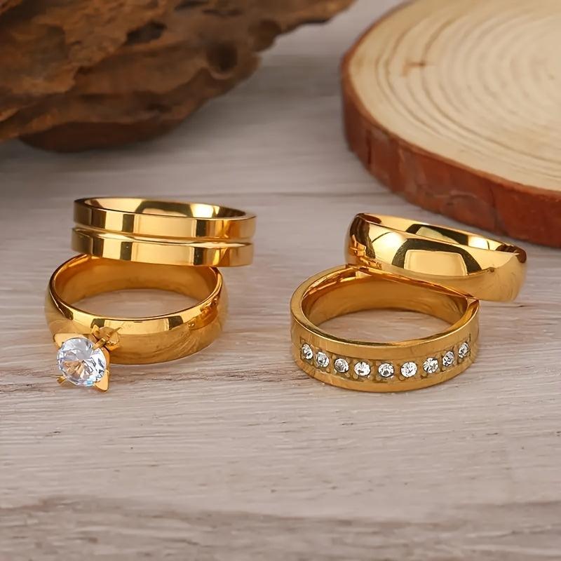 This set of 4 stainless steel rings features retro design with sparkling rhinestone accents. Suitable for both men and women. Perfect for adding a touch of elegance to your everyday look.