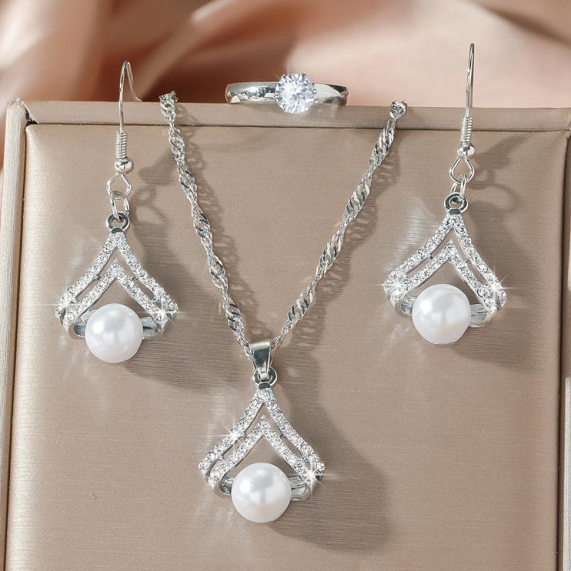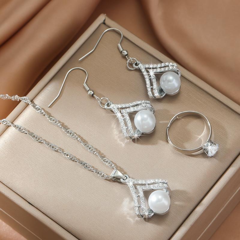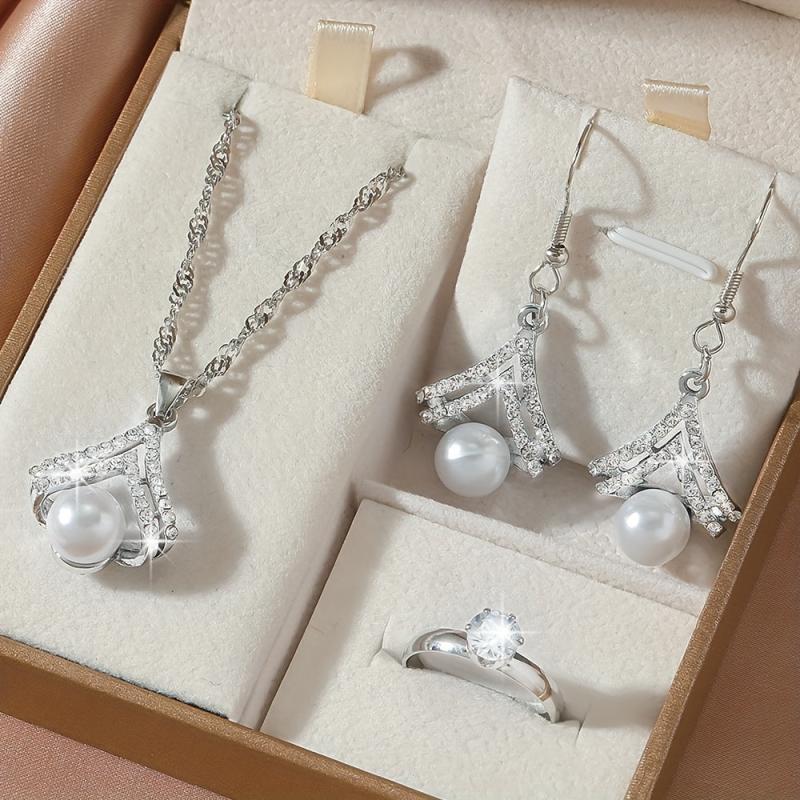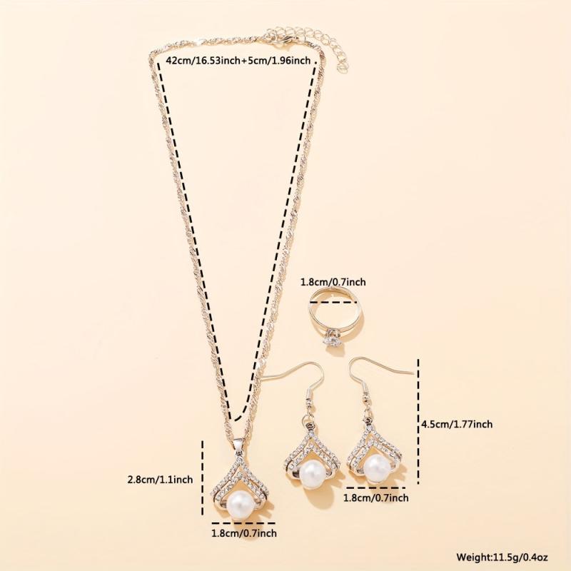 This elegant women's jewelry set includes a necklace, earrings, and ring, perfect for engagement, wedding, anniversary or any season wear. The set features stunning synthetic gemstones that add a touch of glamour to any outfit.
