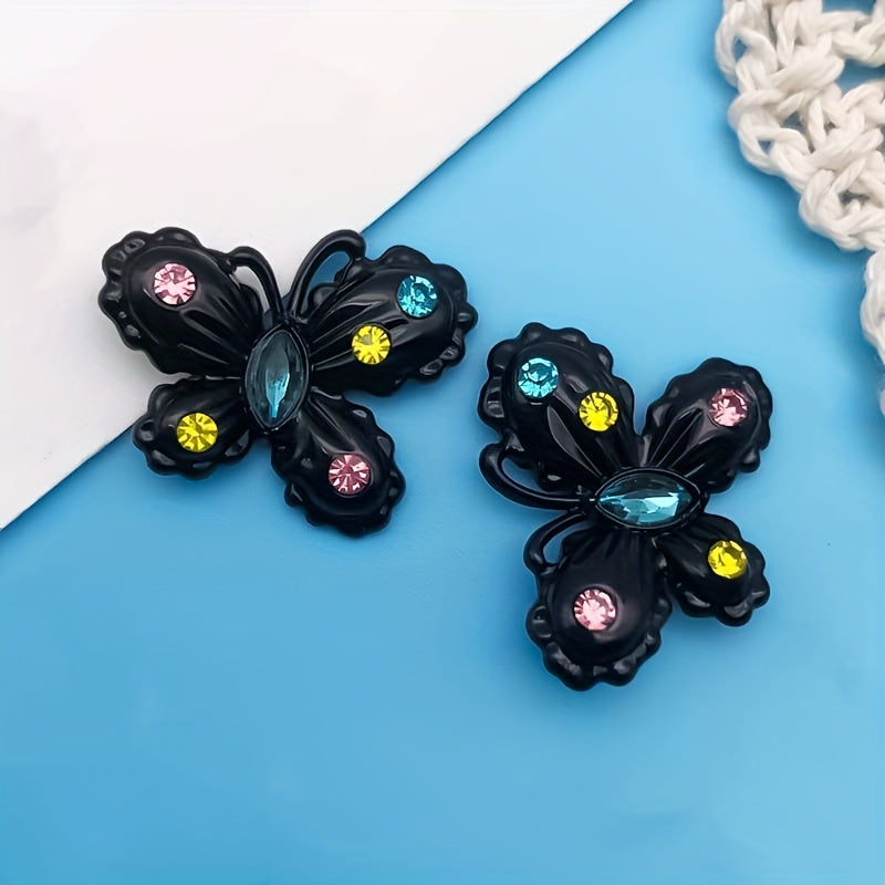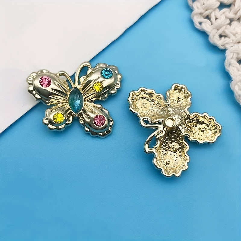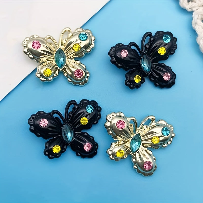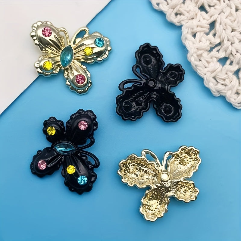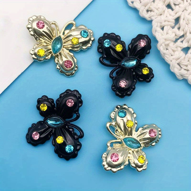 Add a touch of colorful elegance to your jewelry creations with this pack of 4 zinc alloy butterfly charms adorned with rhinestones. Perfect for necklaces, bracelets, and earrings.