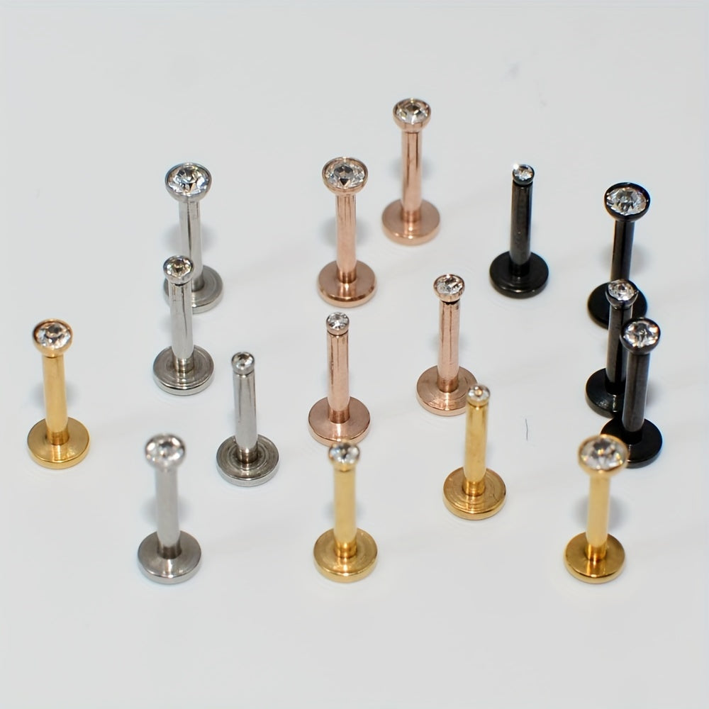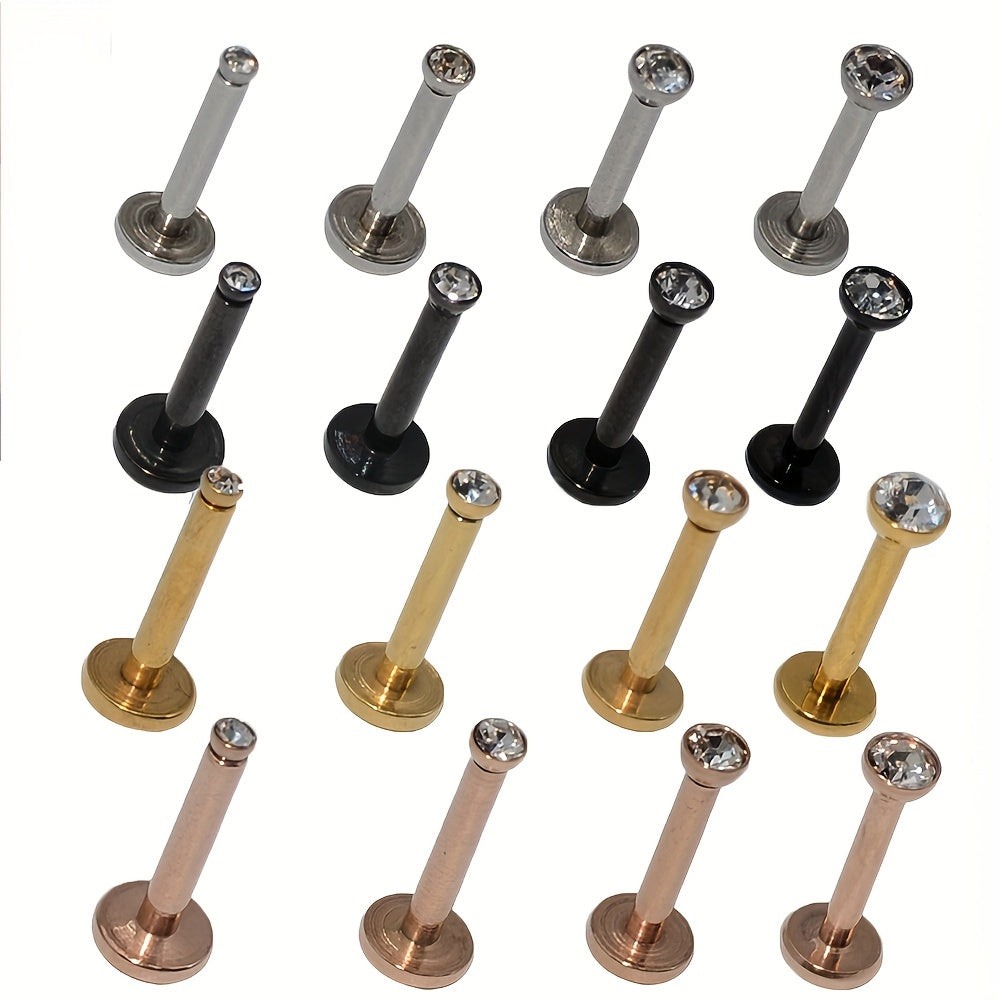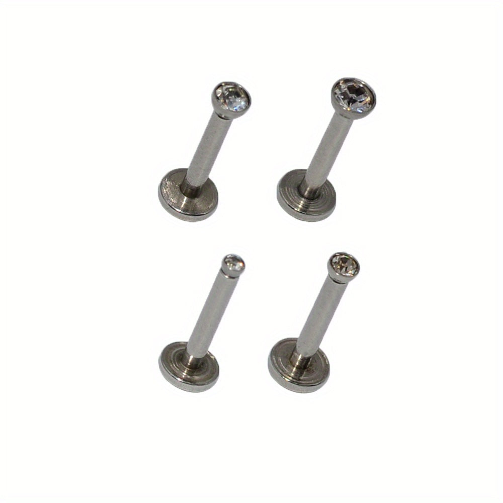 This set includes 4 lip studs inlaid with zircon, made of stainless steel. Perfect for cartilage piercings.