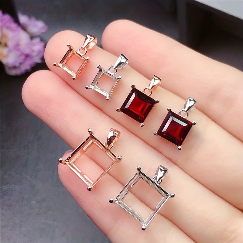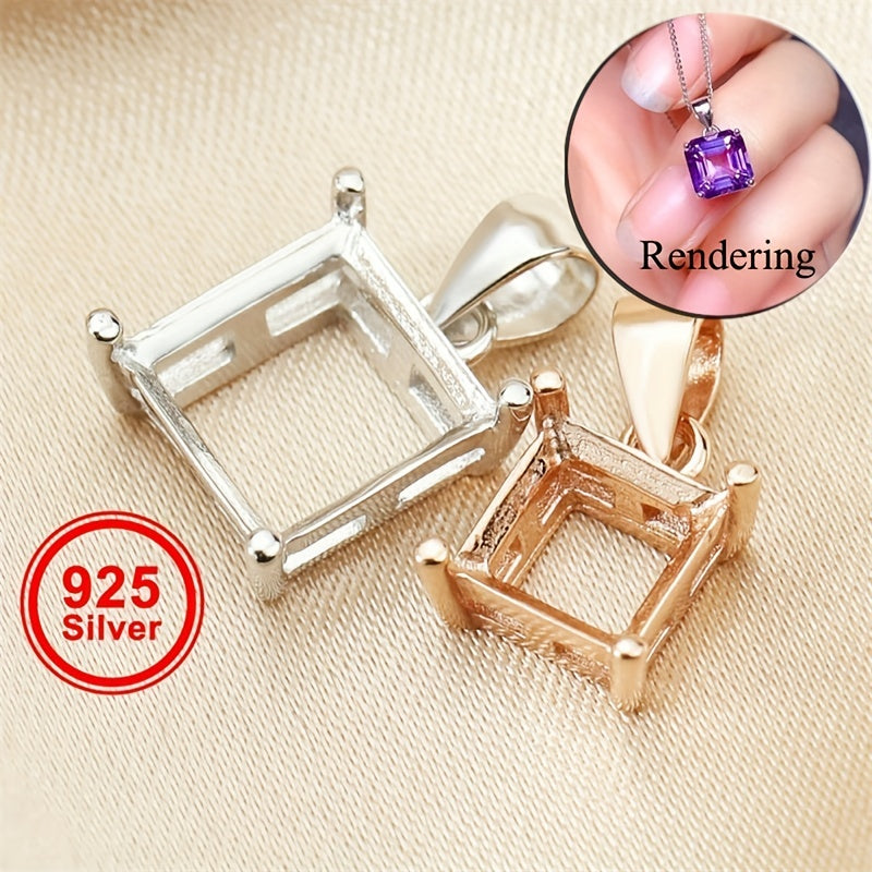 Create your own unique pendant with this Square Prong Bezel Tray setting. Made of solid 925 sterling silver with a rose golden finish, perfect for showcasing gemstones.