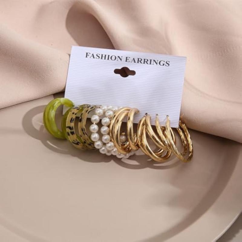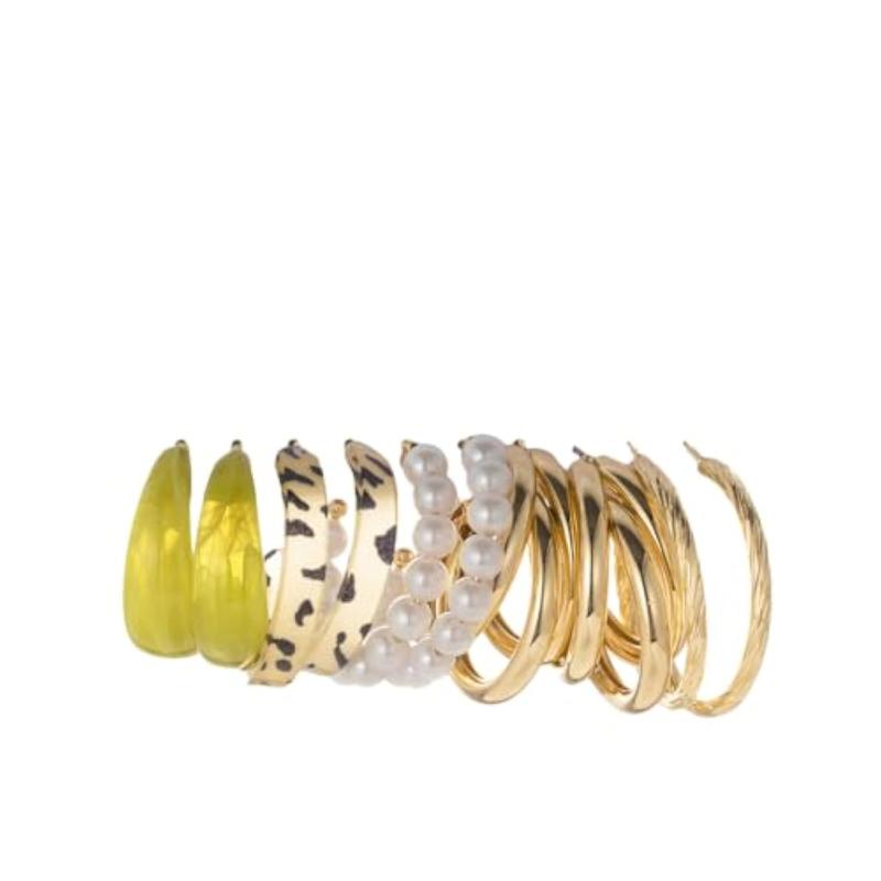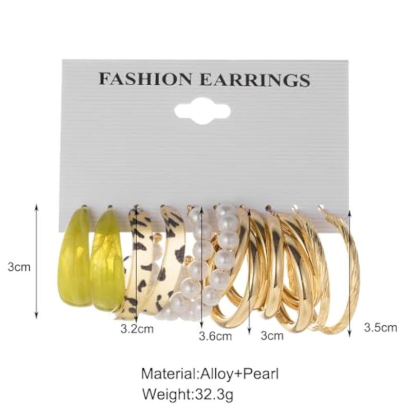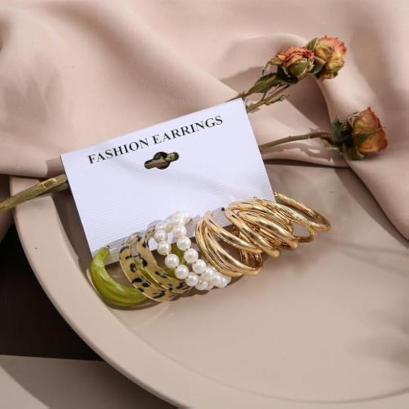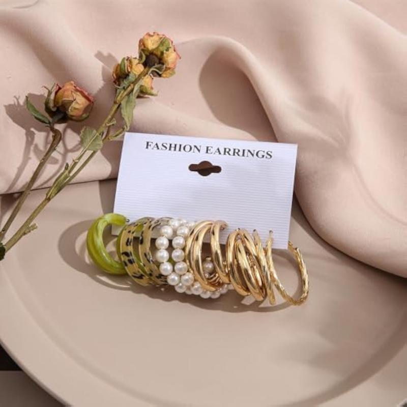 Elevate your style with this set of 5 pairs of trendy hoop stud earrings. Perfect for daily wear or special occasions.