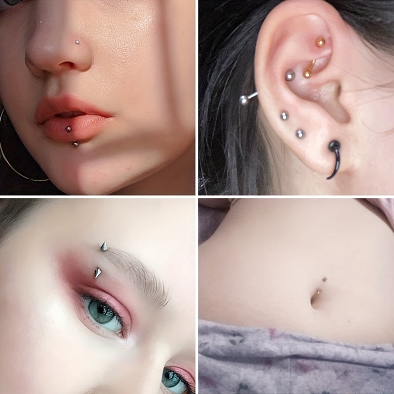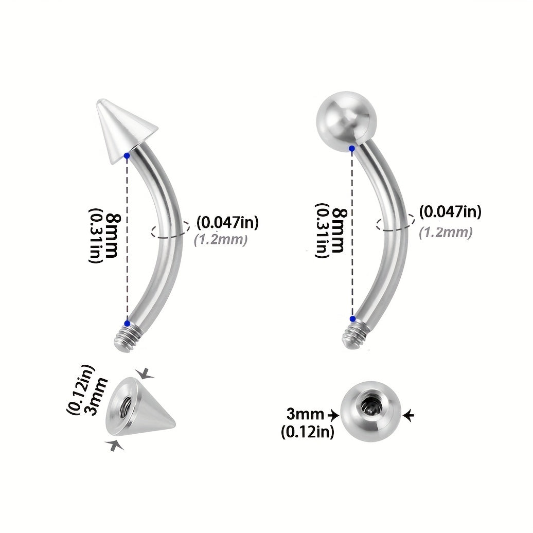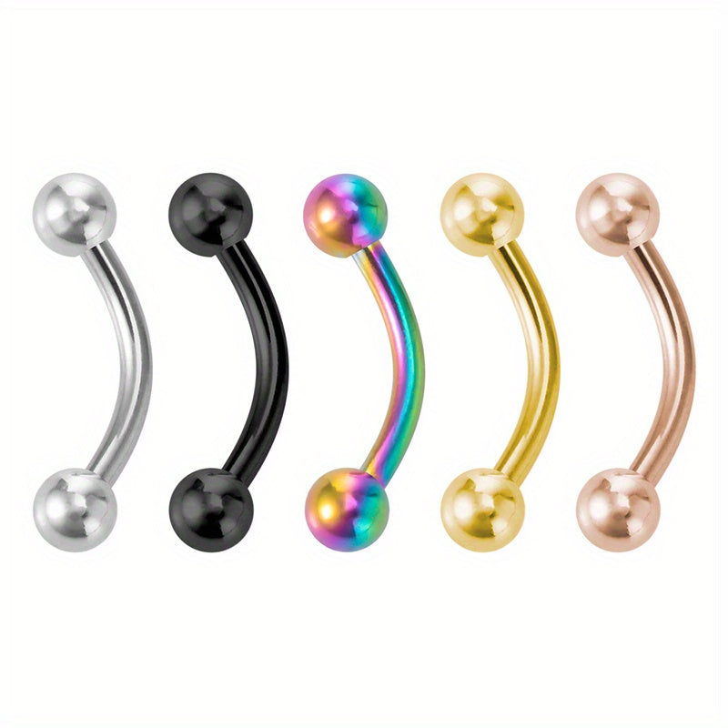 This set includes 5 curved barbell rings made of stainless steel, suitable for eyebrow, lip, tongue, and navel piercings.