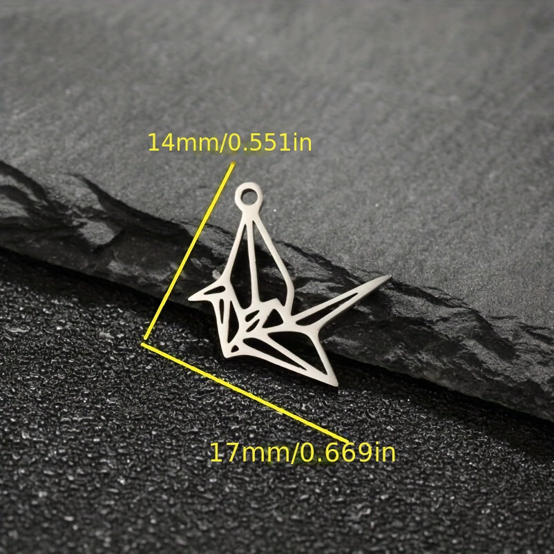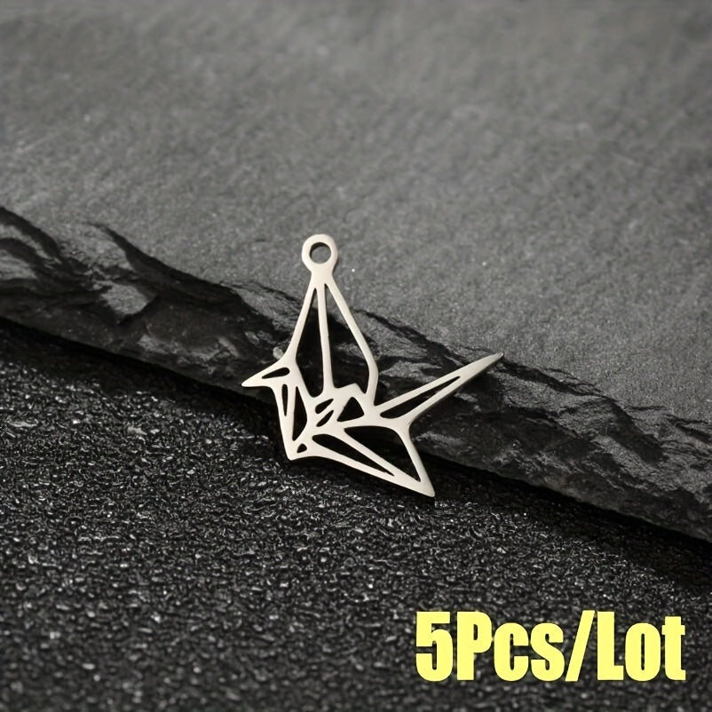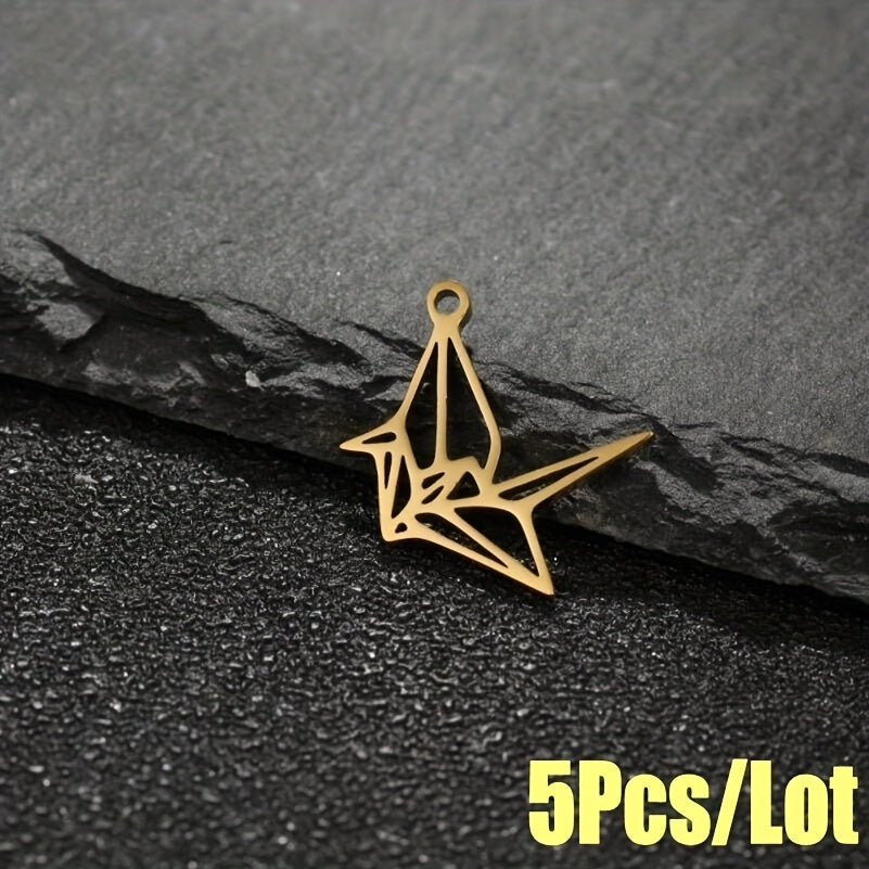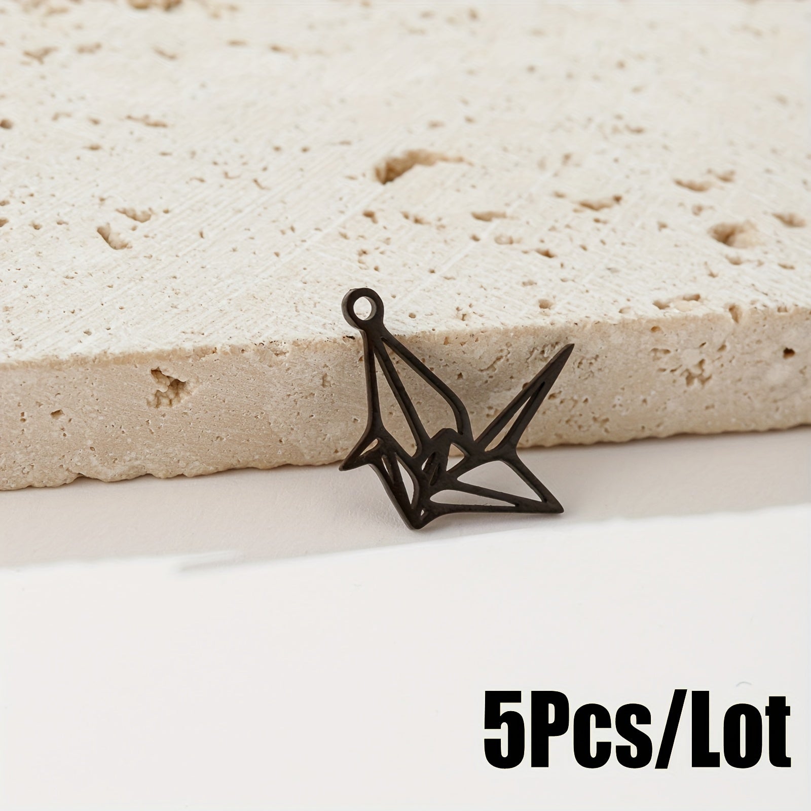 Enhance your DIY projects with these 5 stainless steel hollow origami crane pendants. Ideal for earrings, bracelets, necklaces, and more. Available in three colors.