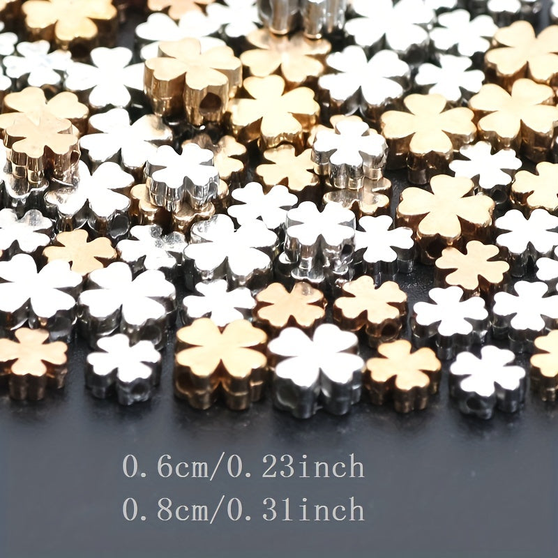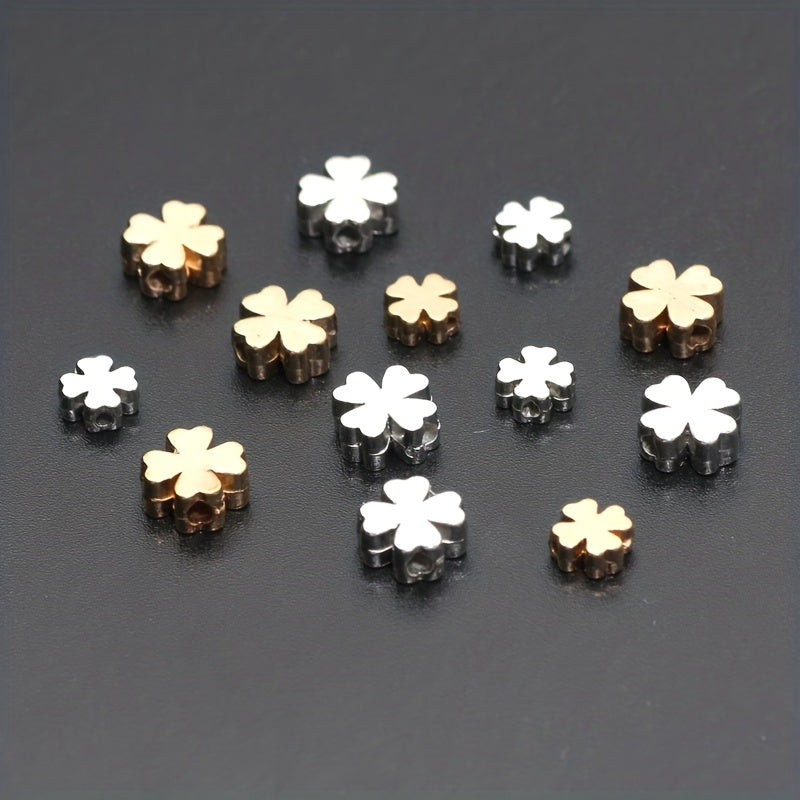 Add a touch of luck to your creations with these golden or silver lucky four leaves clover plastic pendants. Perfect for making earrings, bracelets, or necklaces.