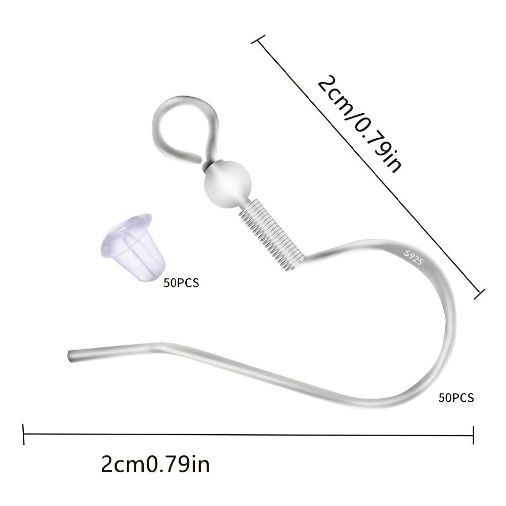 This pack includes 50 pairs of earring hooks with clear rubber earring backs. The fish hook ear wires are perfect for making your own earrings or replacing old hooks.