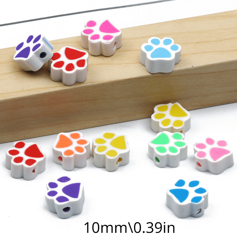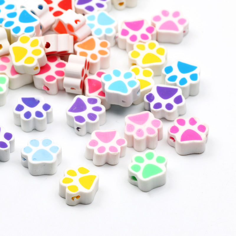 This set includes 50 mixed cartoon cat paw polymer clay loose spacer beads ideal for various jewelry making projects.