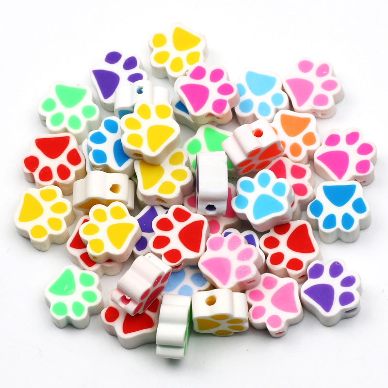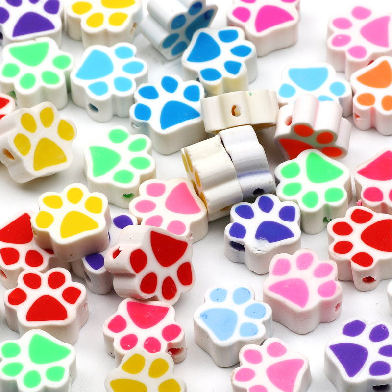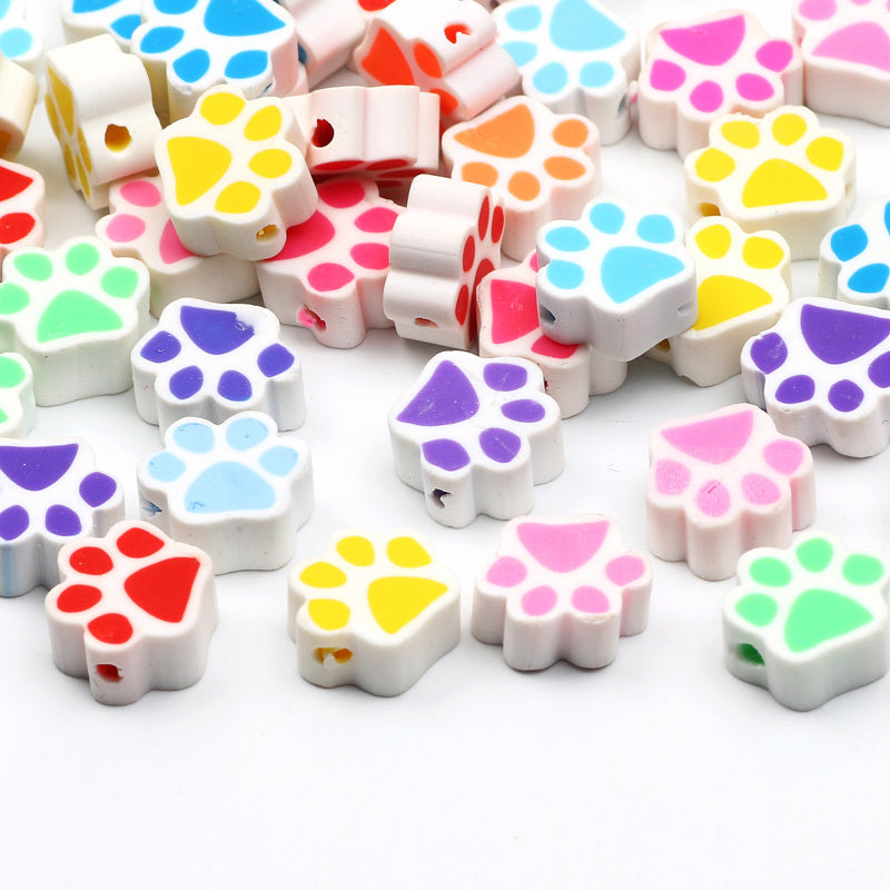 50 Pcs Cartoon Cat Paw Clay Beads for Jewelry Making