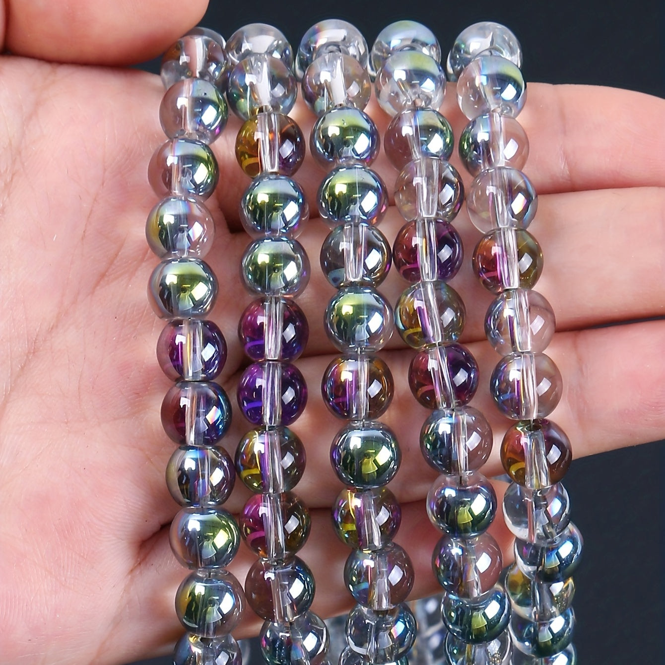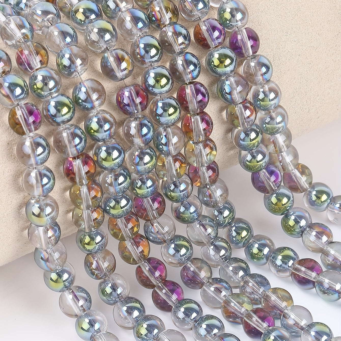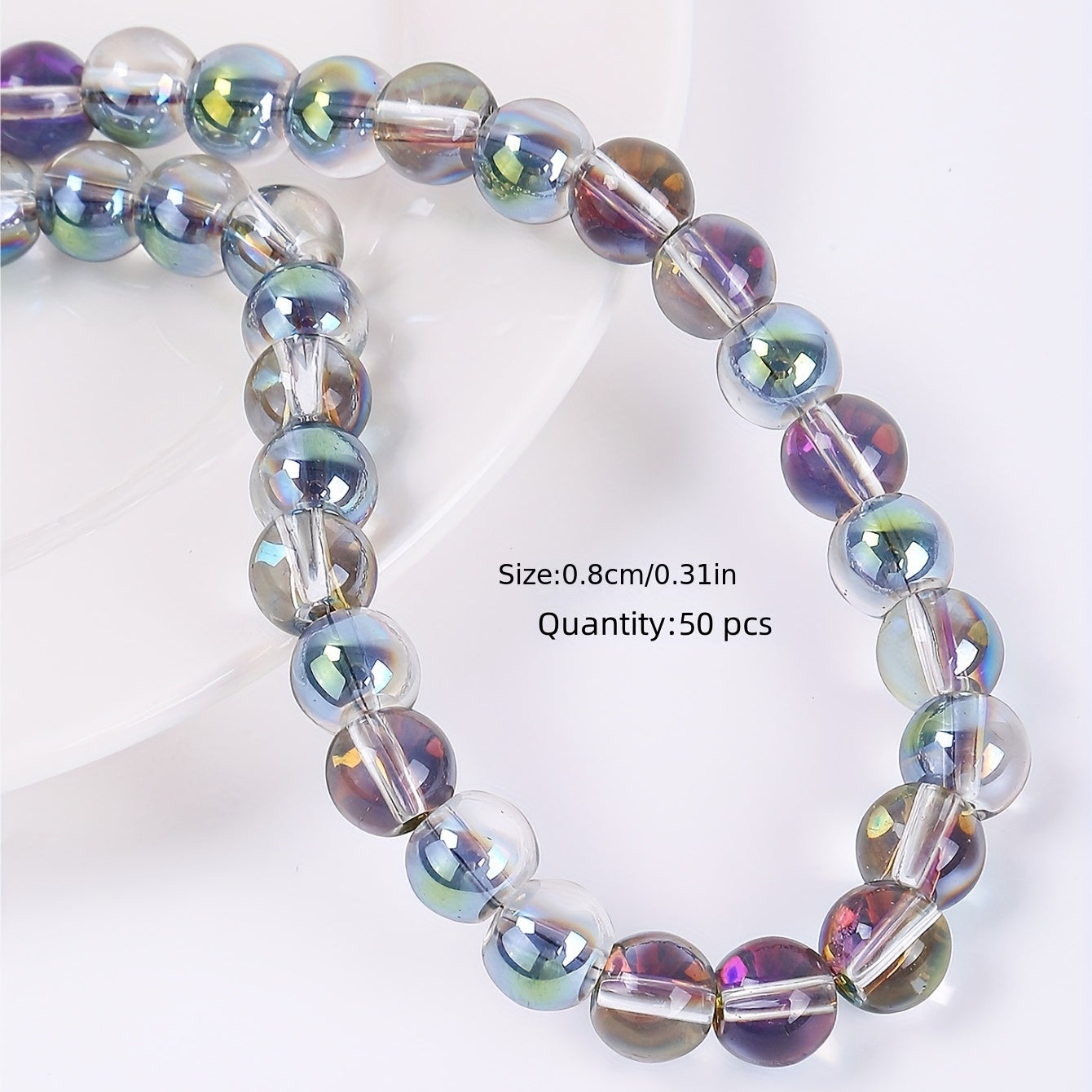 Enhance your jewelry making with this set of 50 flash glass beads. Perfect for DIY bracelets and necklaces, these beads add a touch of sparkle to your creations.
