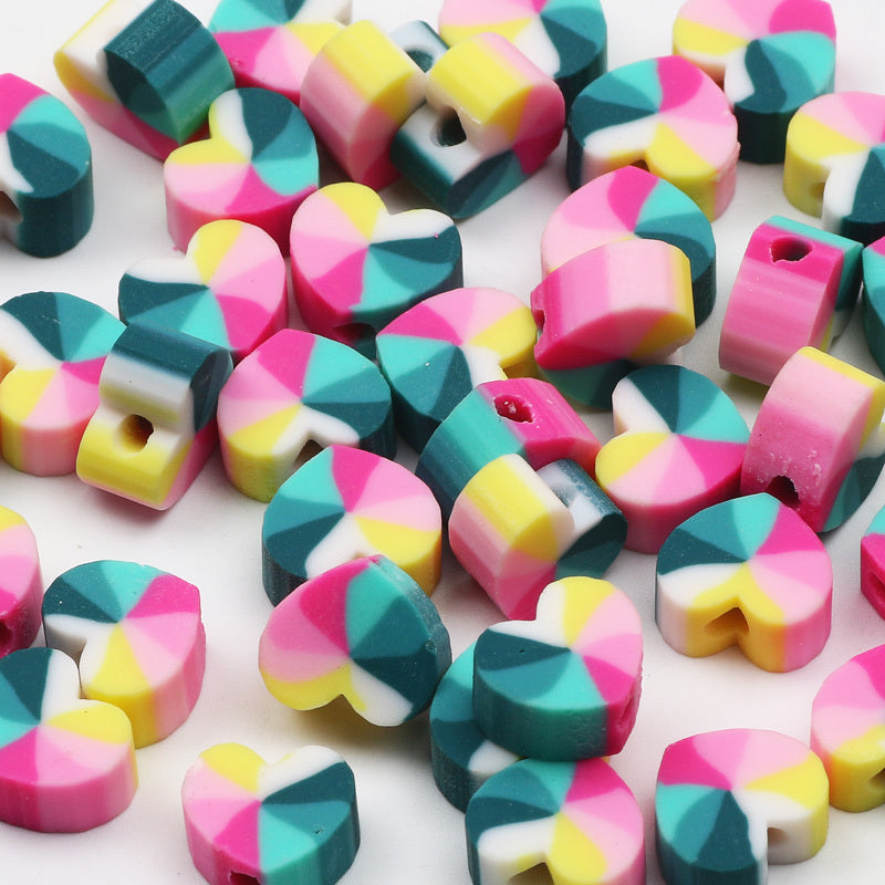 Enhance your jewelry making projects with these heart-shaped polymer clay beads. Perfect for bracelets, necklaces, and other DIY crafts.