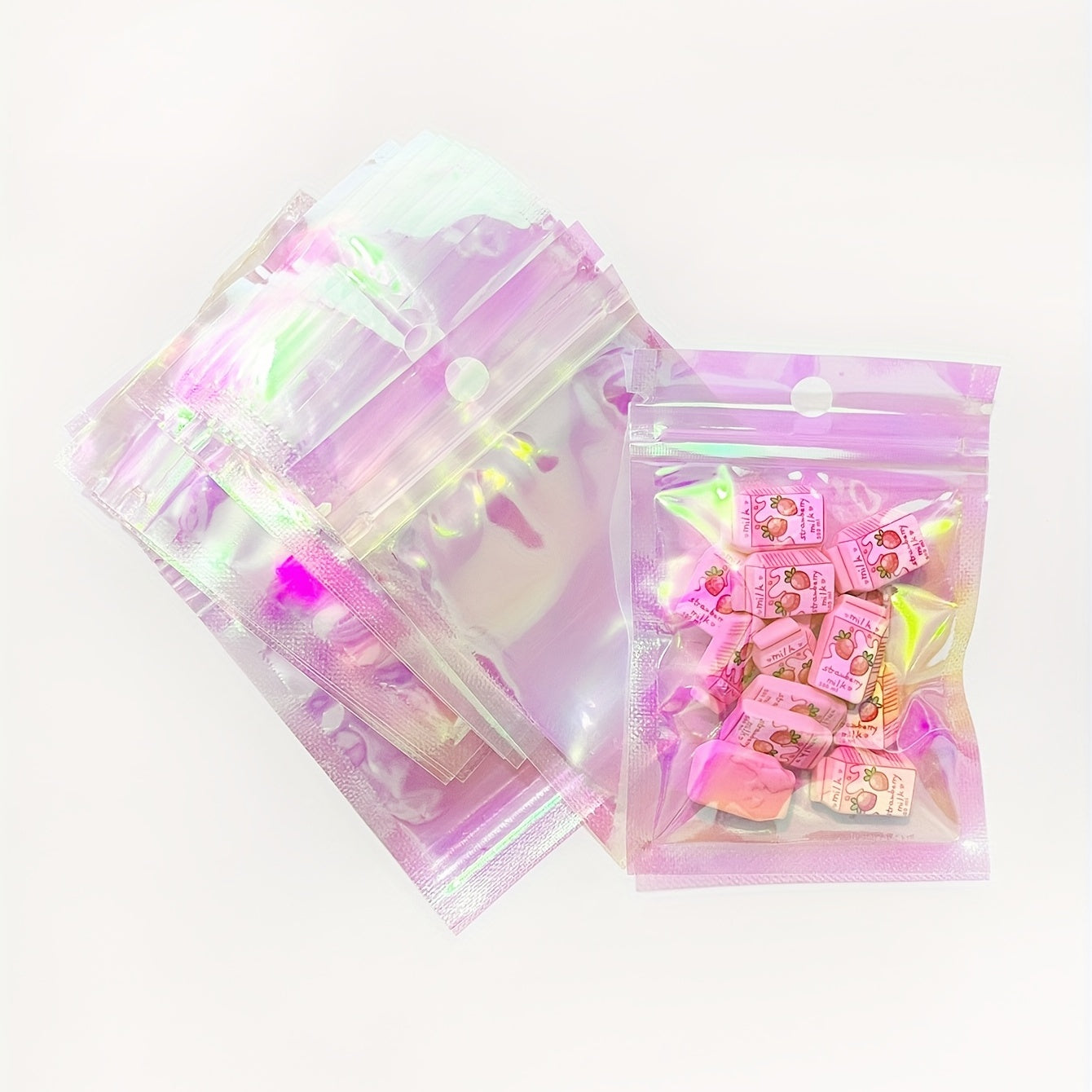 These reusable and dustproof rainbow bags are perfect for packaging jewelry items. The pink laser pearlescent finish adds an elegant touch to your presentation.