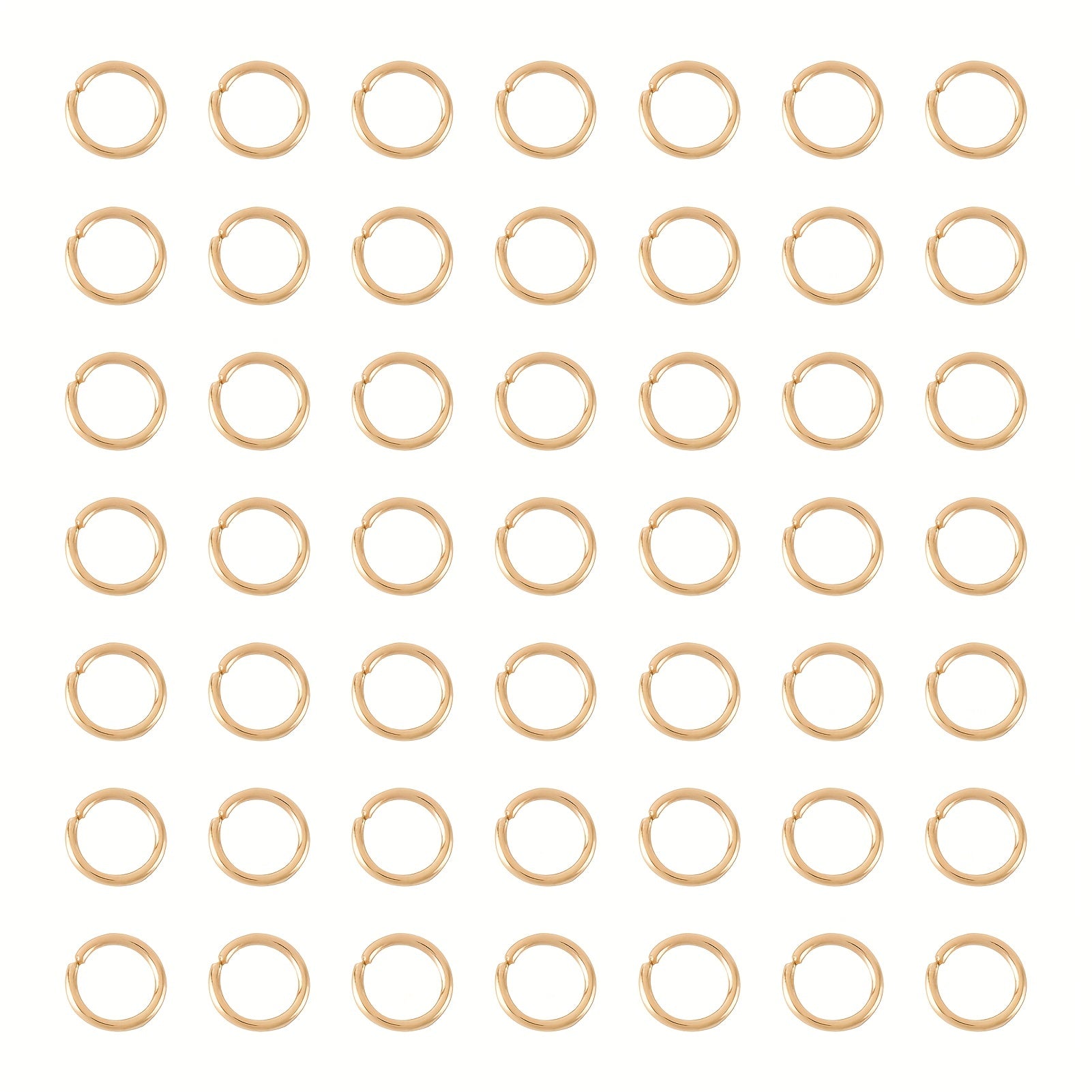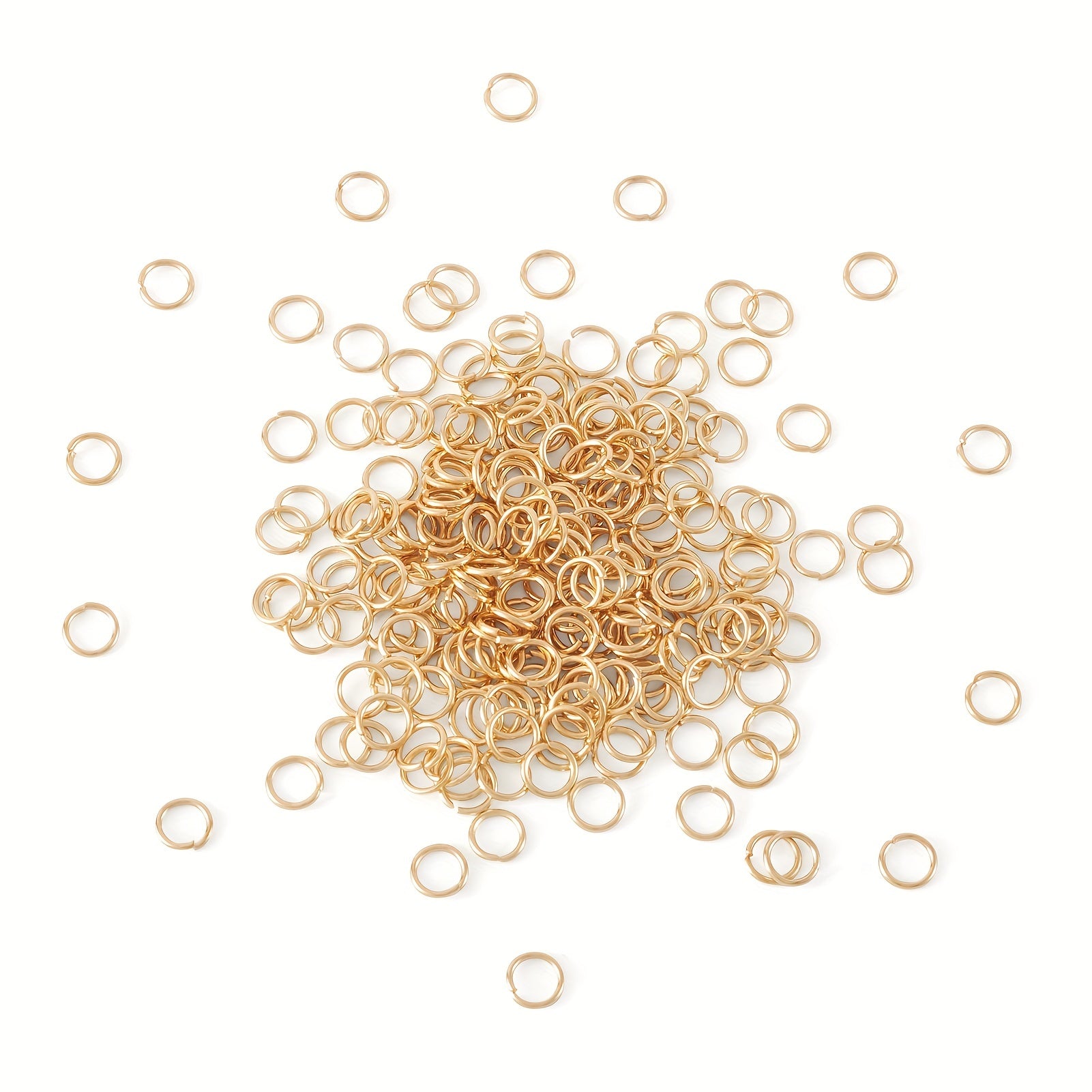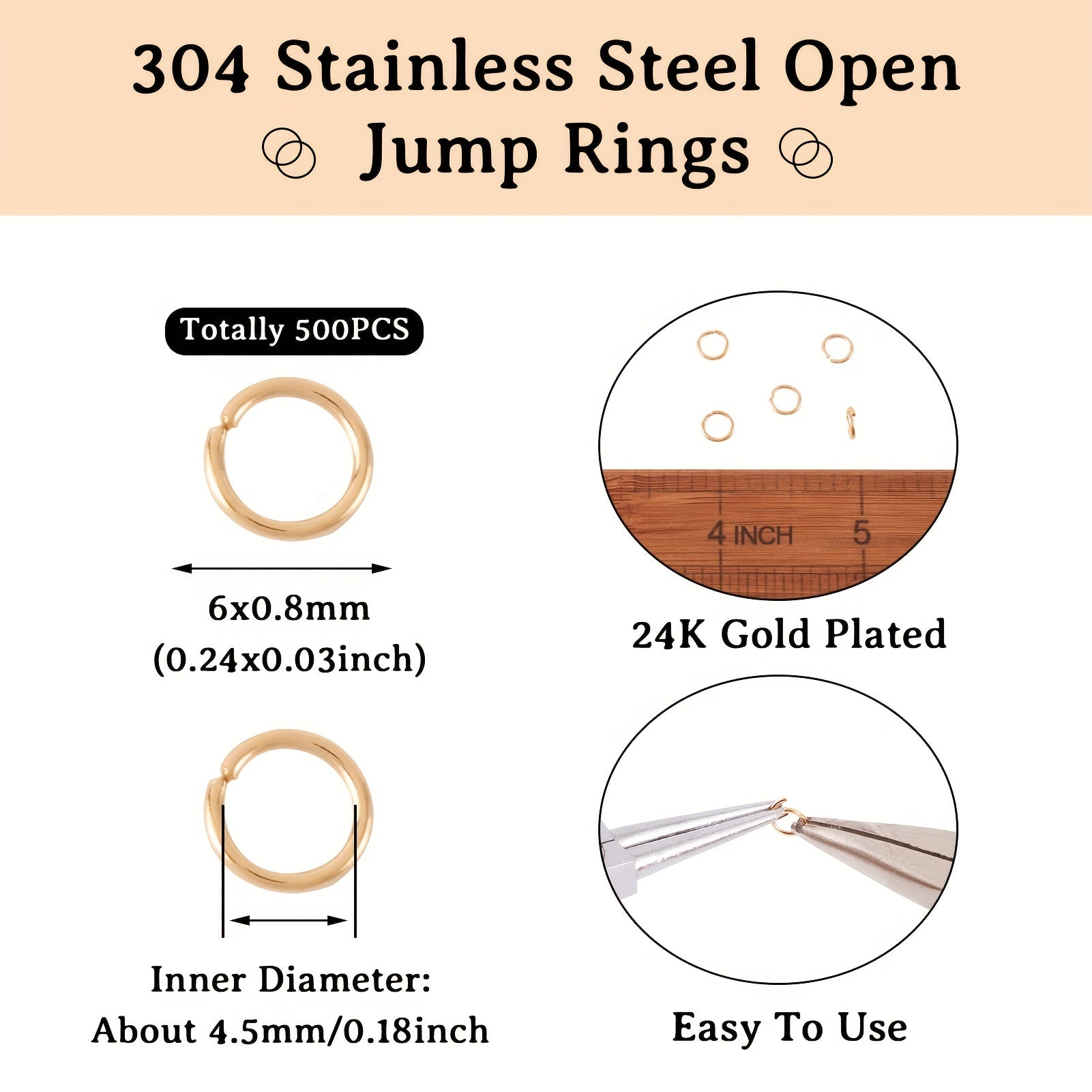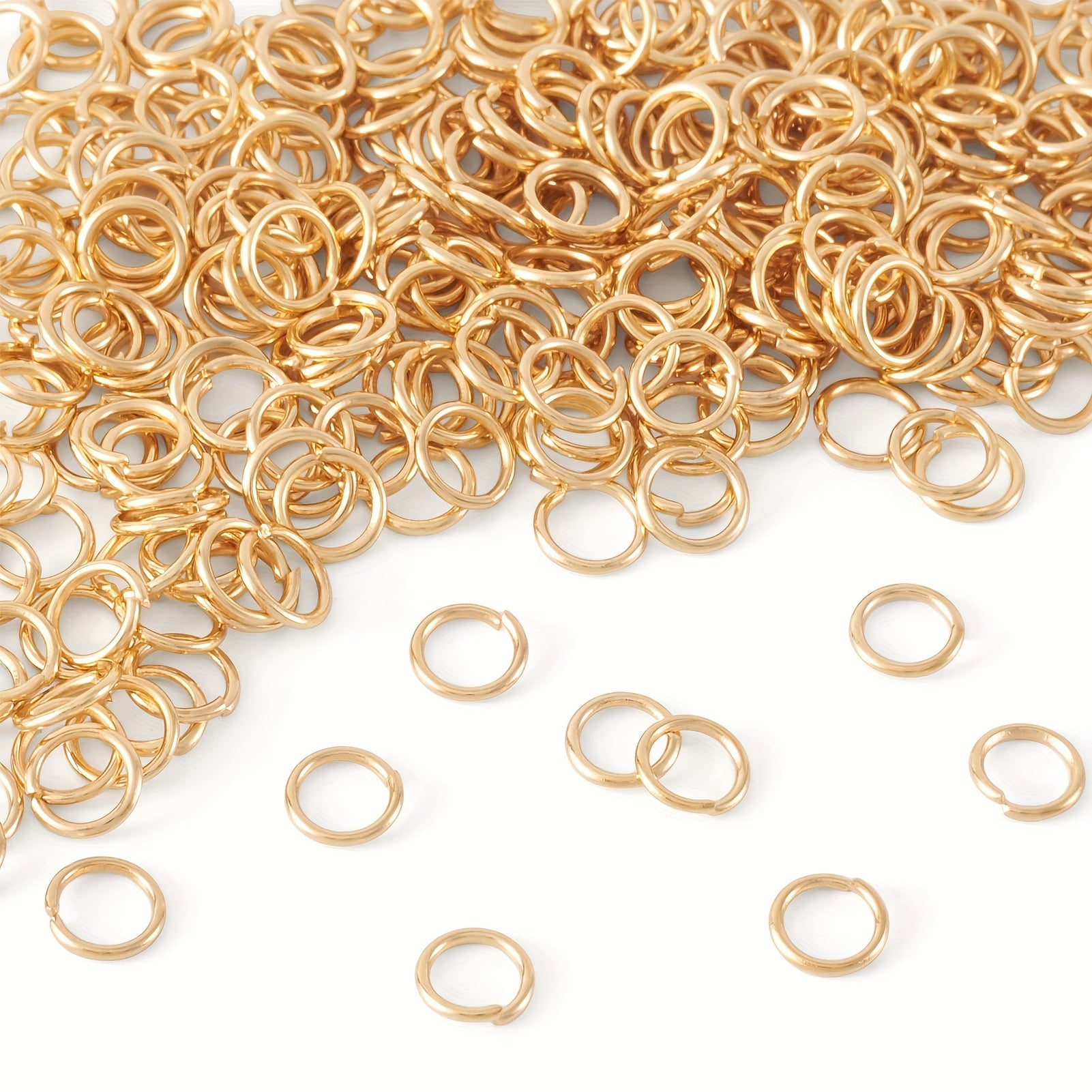 Get this pack of 500 golden stainless steel jump rings for creating necklaces, bracelets, earrings, and other jewelry pieces.