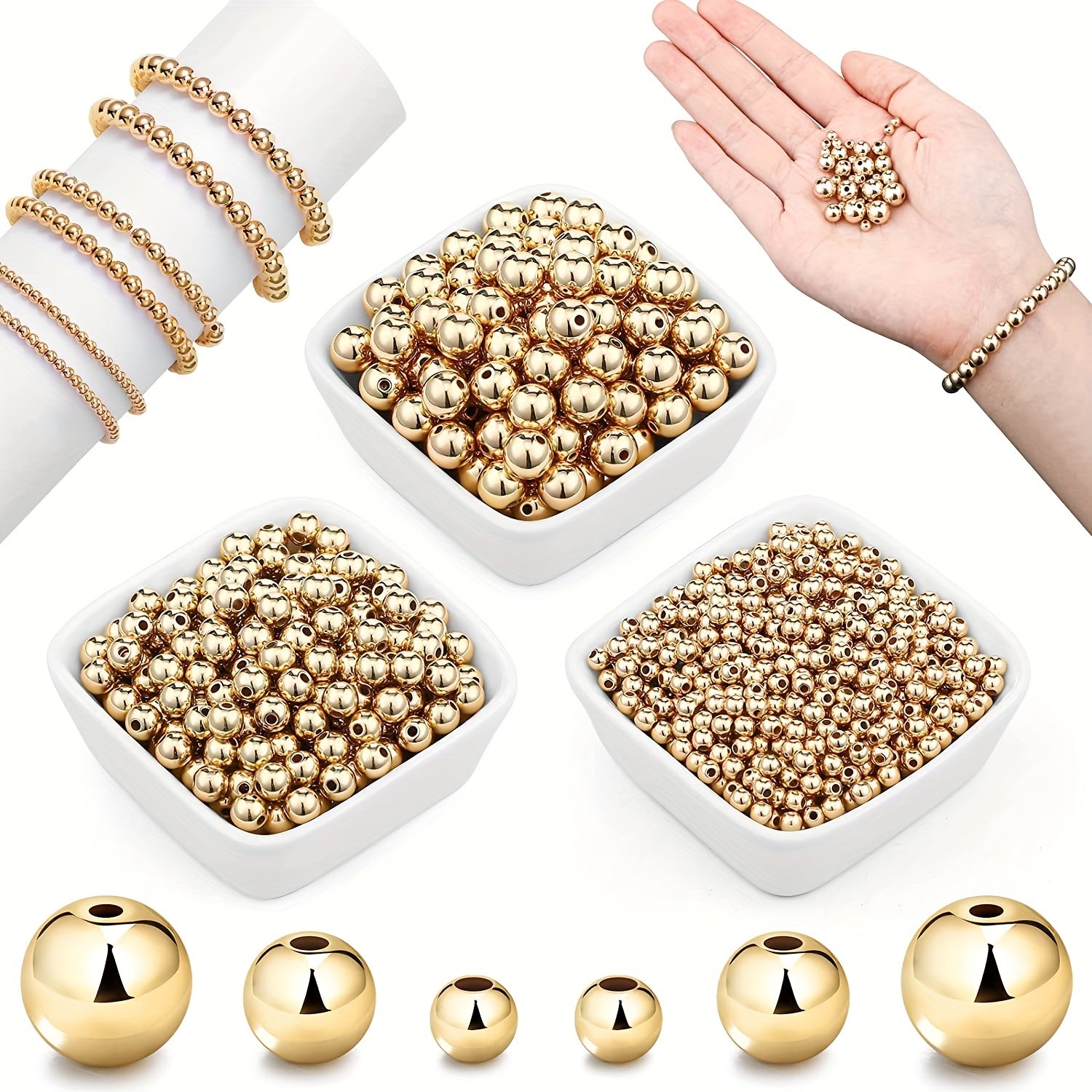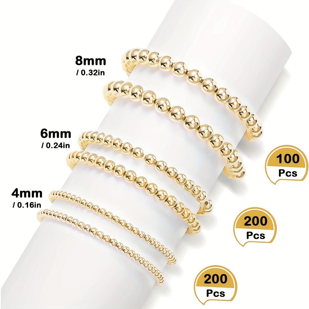 Enhance your jewelry-making projects with this set of 500 golden round beads. Perfect for earrings, bracelets, necklaces, and more.