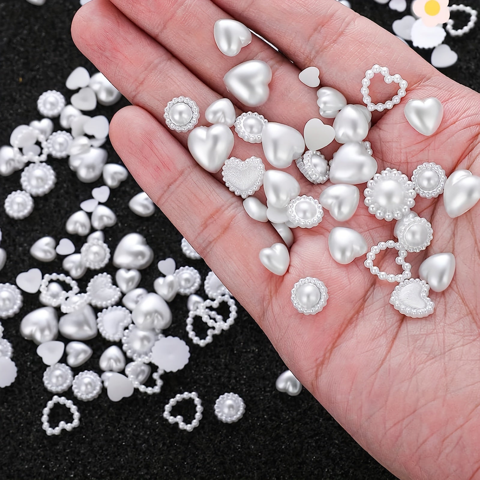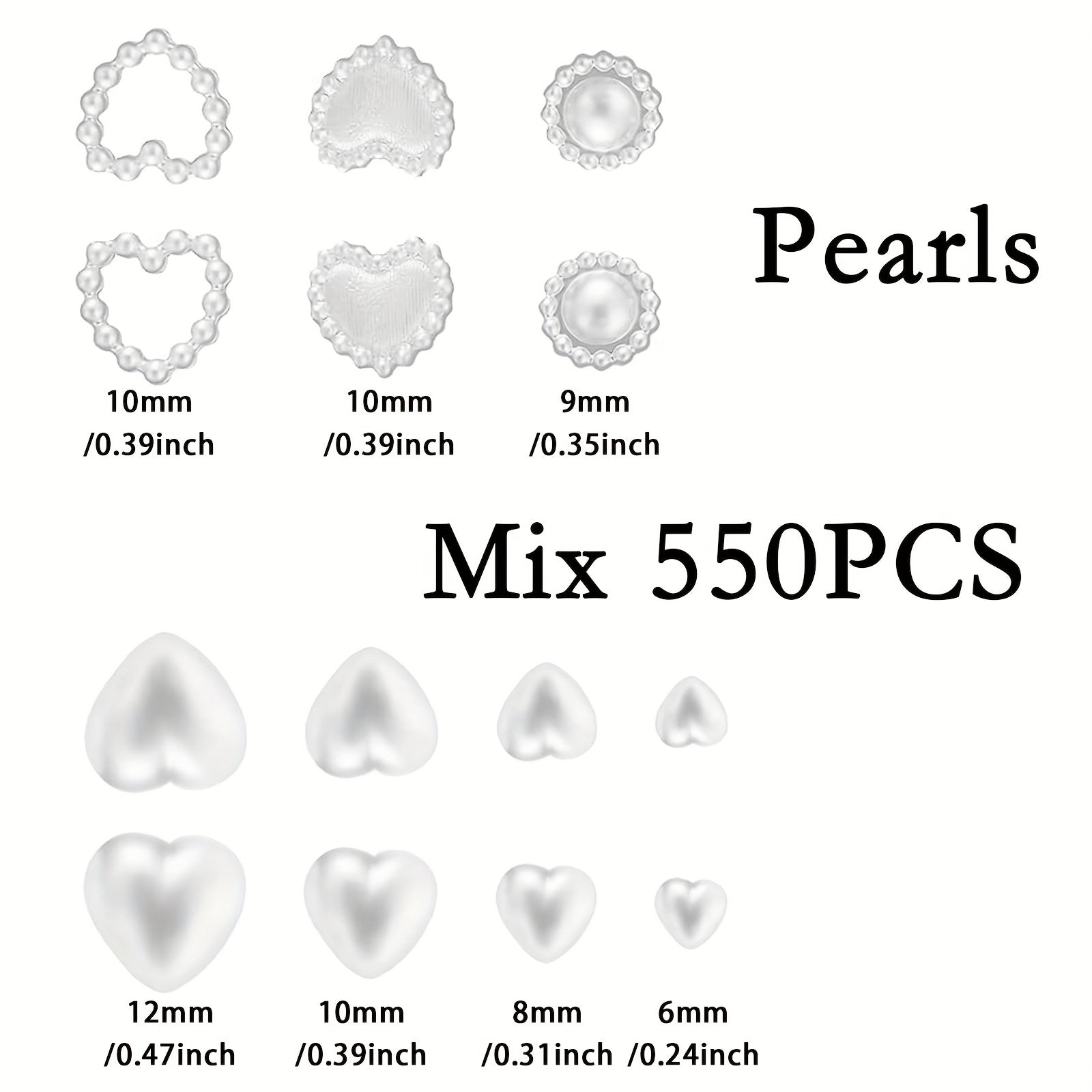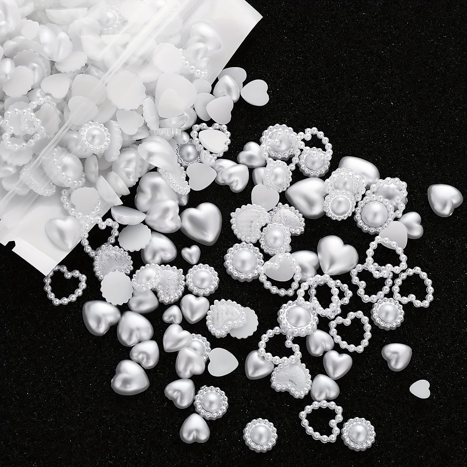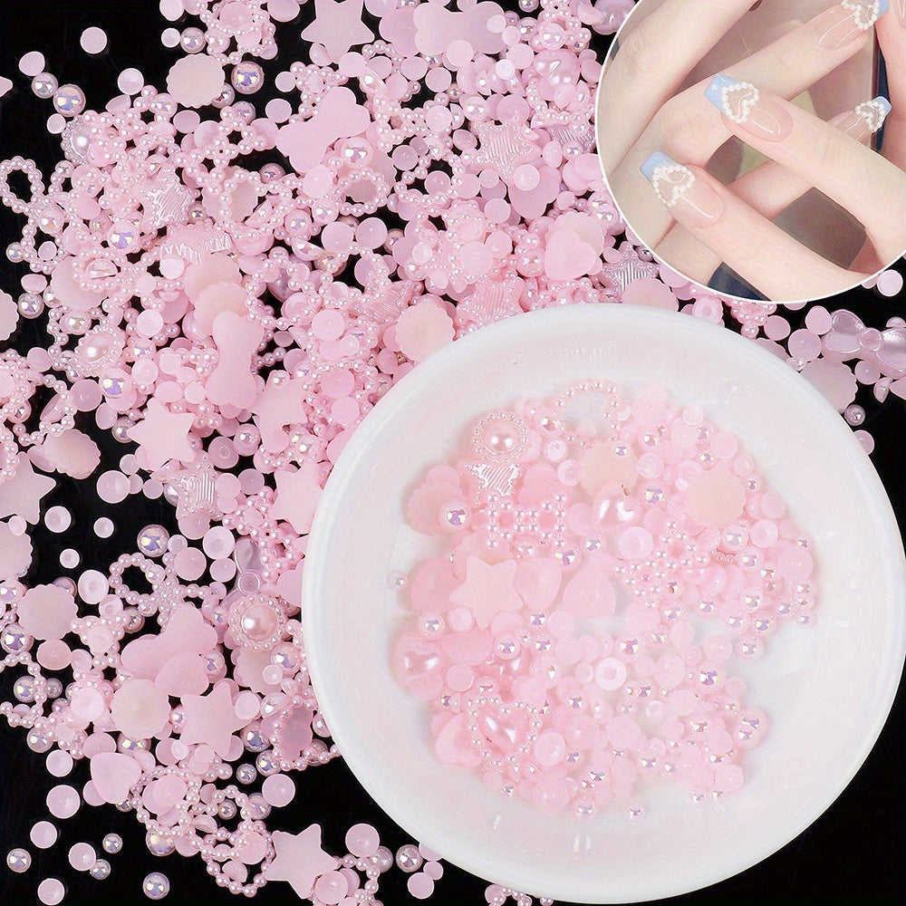 This set includes 500 mixed shape acrylic nail charms in assorted shapes such as hearts and pearls. Perfect for nail art and other DIY crafts.