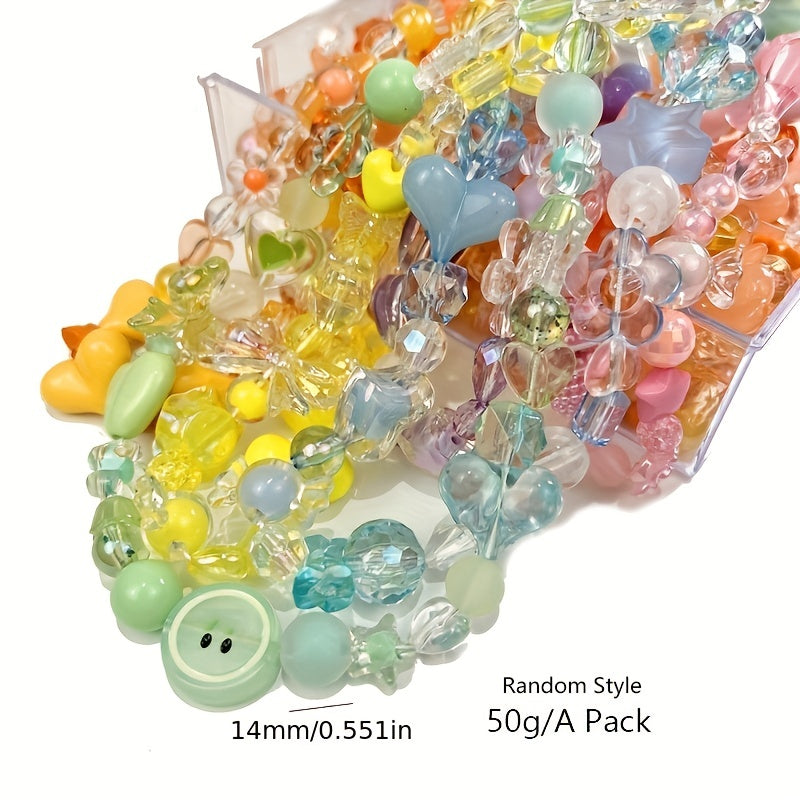 Create your own unique jewelry pieces with this 50g assortment of acrylic beads. Perfect for bracelets, necklaces, and more!