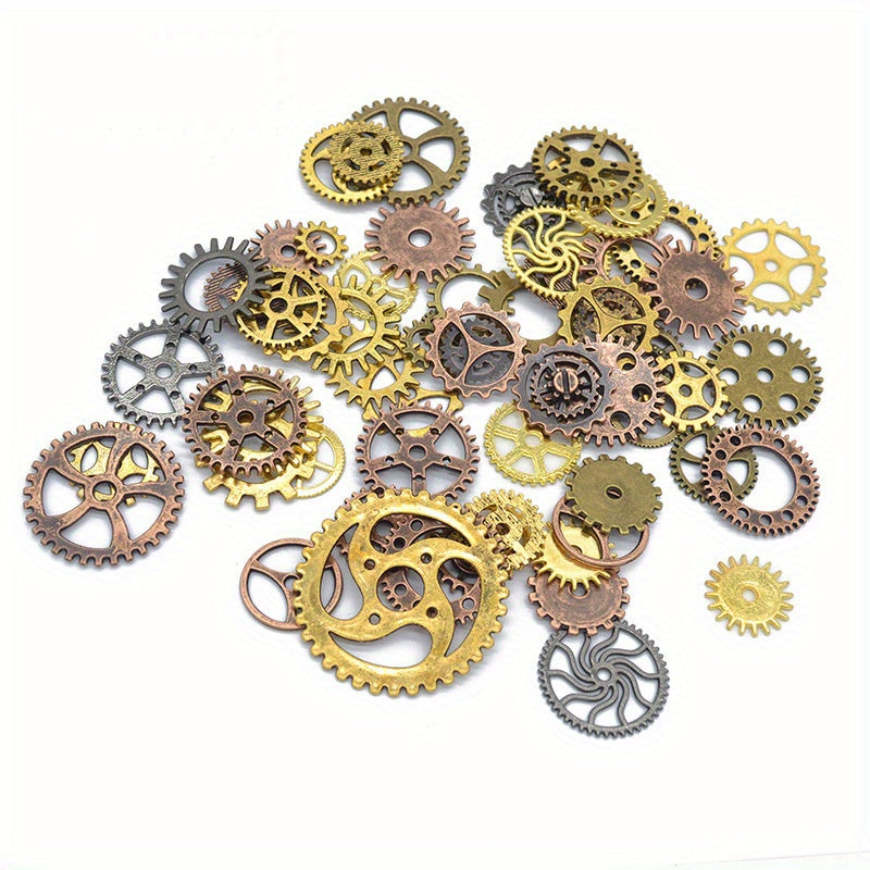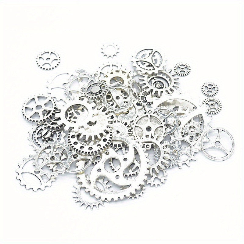 Explore your creativity with this 50g assortment of mixed style punk steam gear pendants, perfect for crafting unique jewelry pieces.