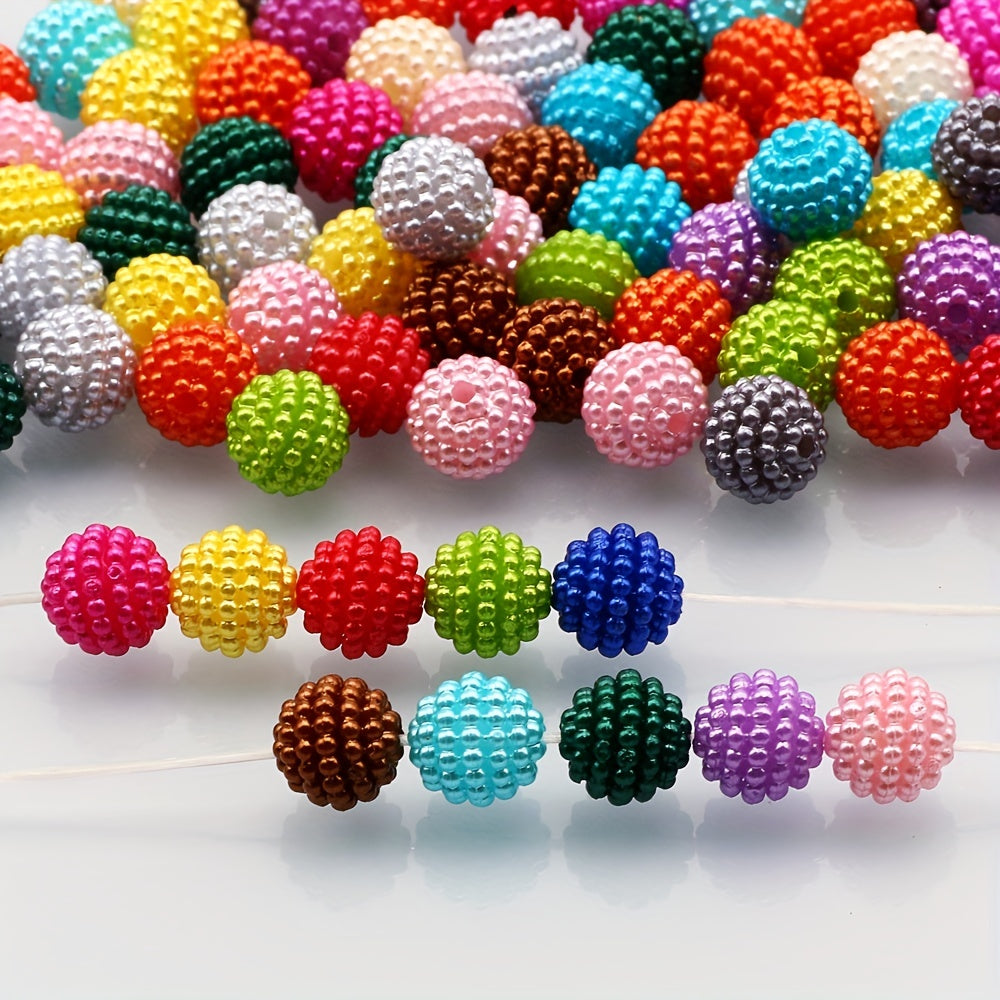 Enhance your crafting projects with this set of 50 multicolor pearl acrylic round bayberry pattern beads. Perfect for making bracelets, necklaces, earrings, keychains, and other accessories.