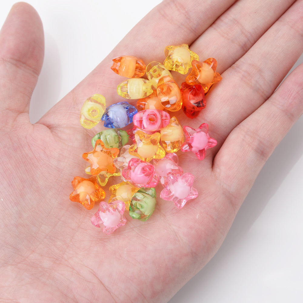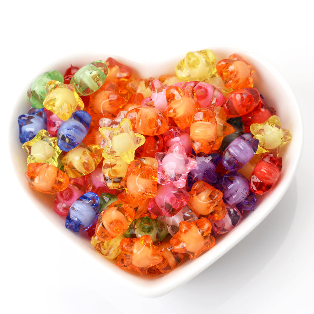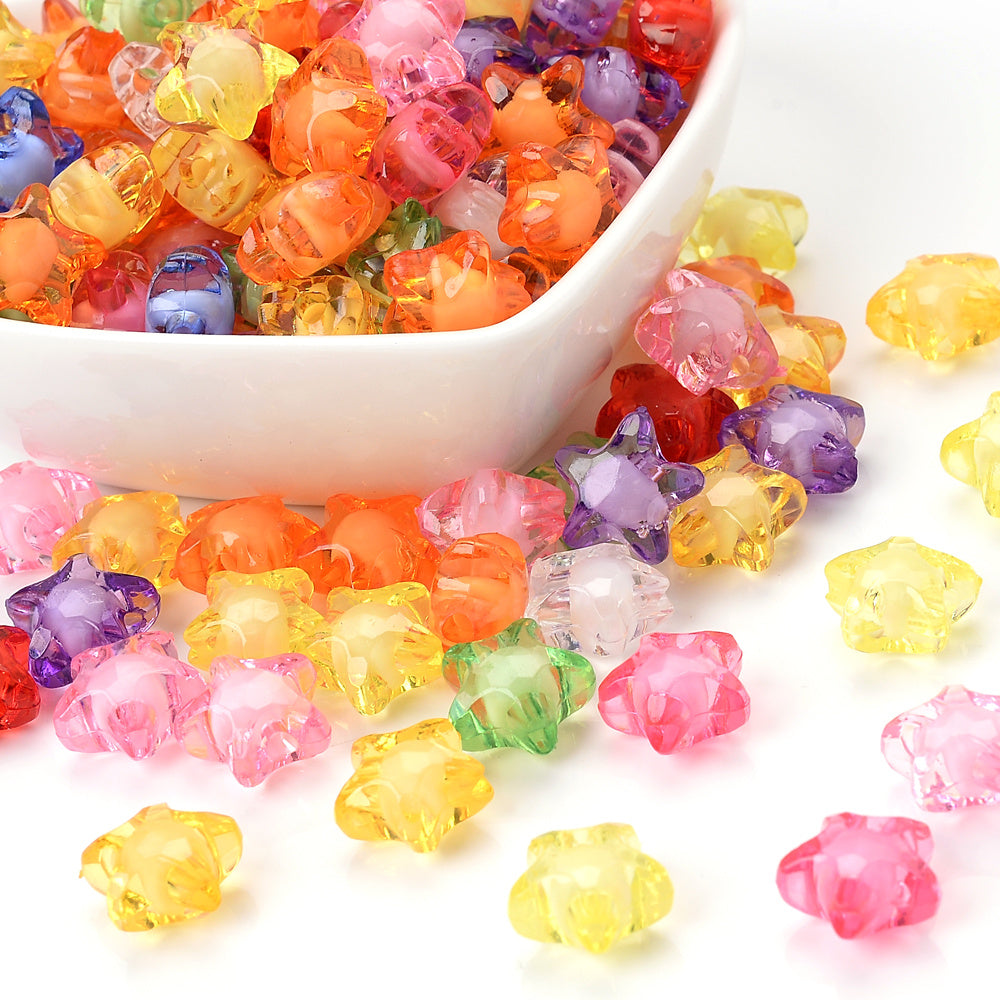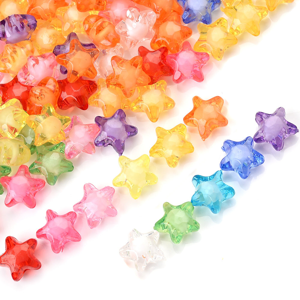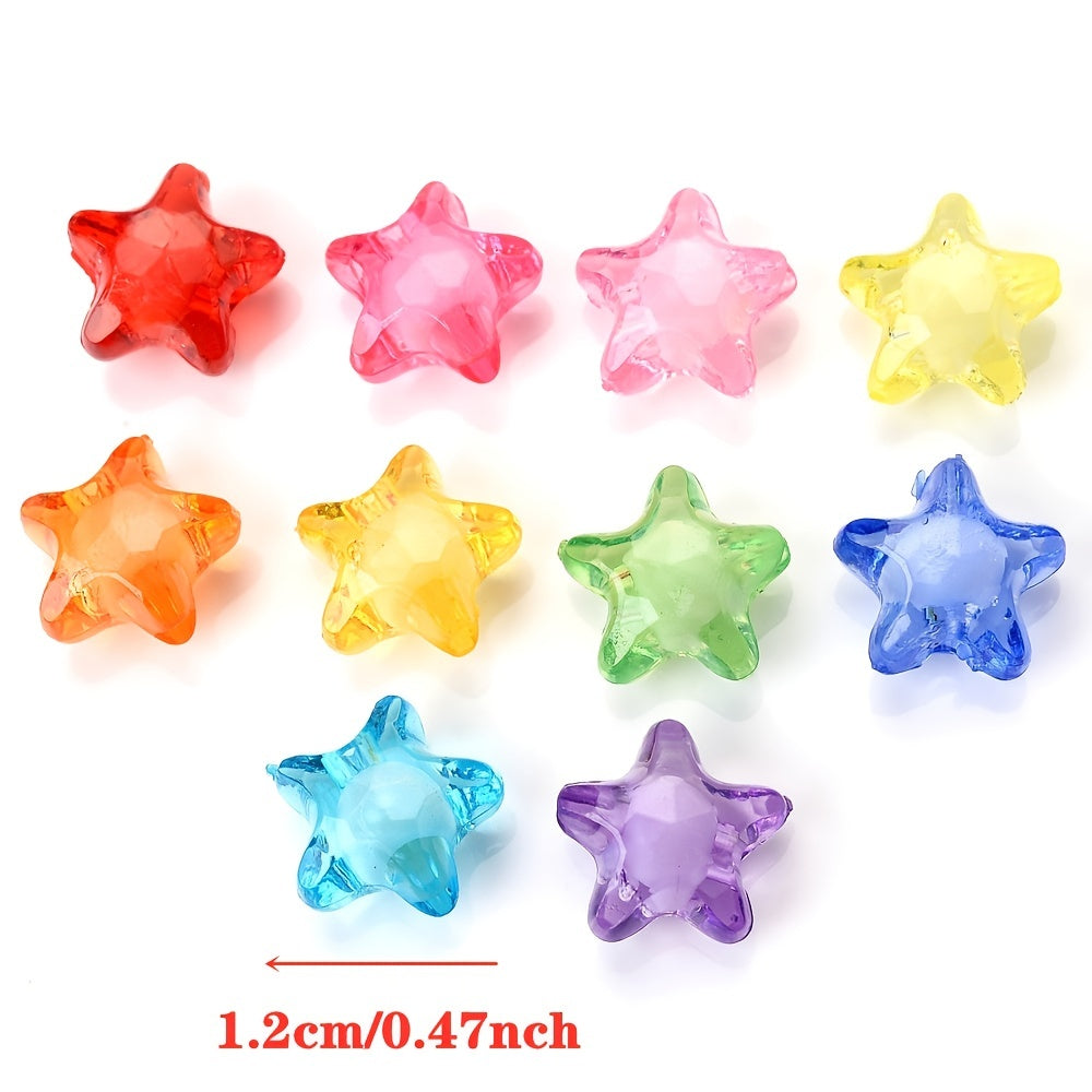 Enhance your DIY jewelry projects with this set of 50 multicolor acrylic star beads. Perfect for bracelets, necklaces, hairpins, and more.