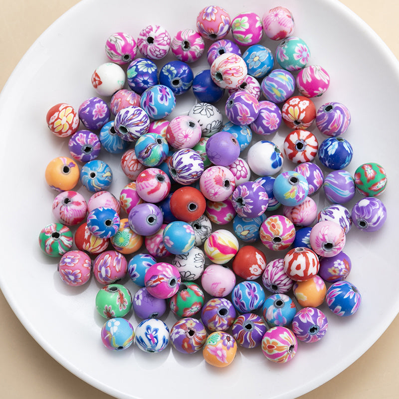 These polymer clay beads are perfect for making DIY bracelets and necklaces. The assortment includes 50 round spacer flower beads in vibrant colors.