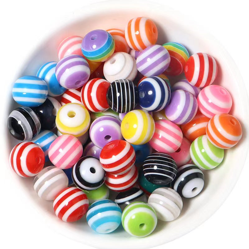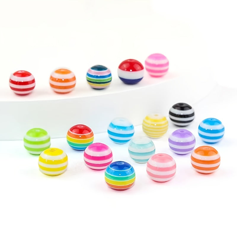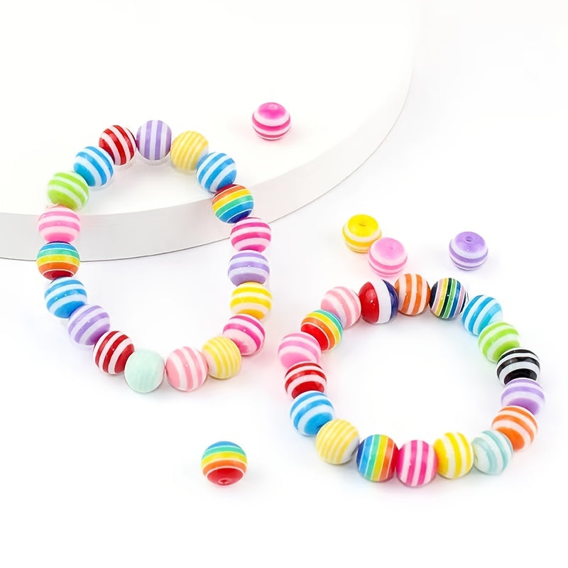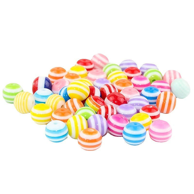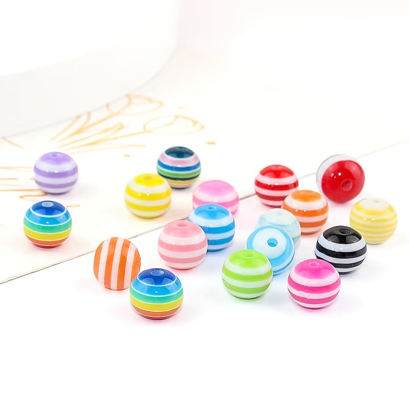 This bag contains 50 pieces of 8mm rainbow stripe beads, perfect for crafting and children's accessories. The colorful beads add a fun touch to any project.