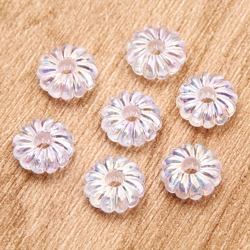 Create stunning jewelry with these 9mm transparent AB thread flat beads made of acrylic. Perfect for DIY projects and crafting.