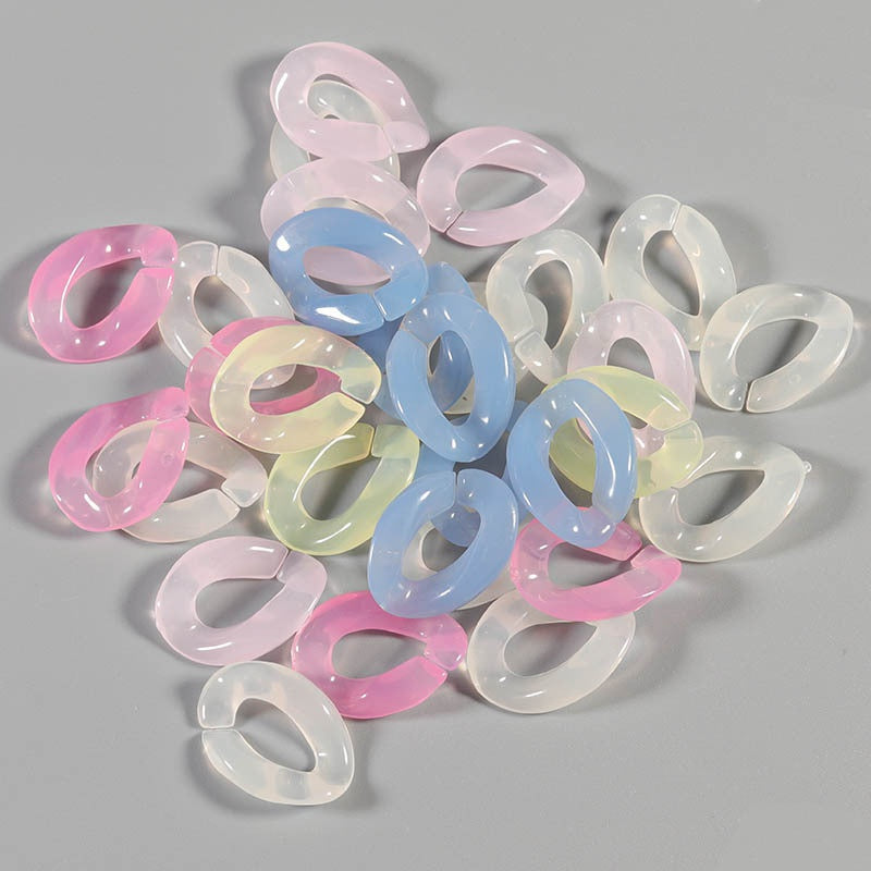Get creative with these hot selling DIY jewelry accessories! This pack includes 50pcs of acrylic chain buckles in a candy plastic transparent design. Perfect for adding a unique touch to your bag or jewelry creations.