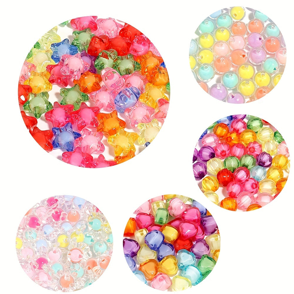 Enhance your jewelry making with this set of 50 acrylic beads in heart, pentagram, pumpkin, candy, and round shapes. Perfect for crafting unique bracelets and necklaces.