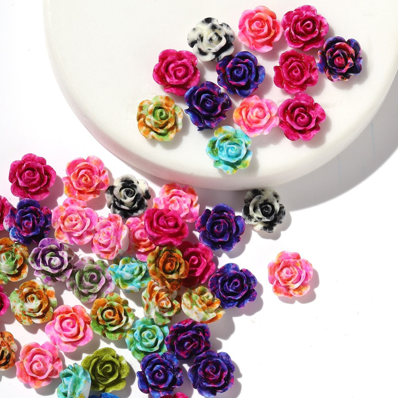 Enhance your jewelry-making projects with this set of 50 colorful camellia pattern beads. Ideal for creating unique necklaces, bracelets, earrings, and pendants.