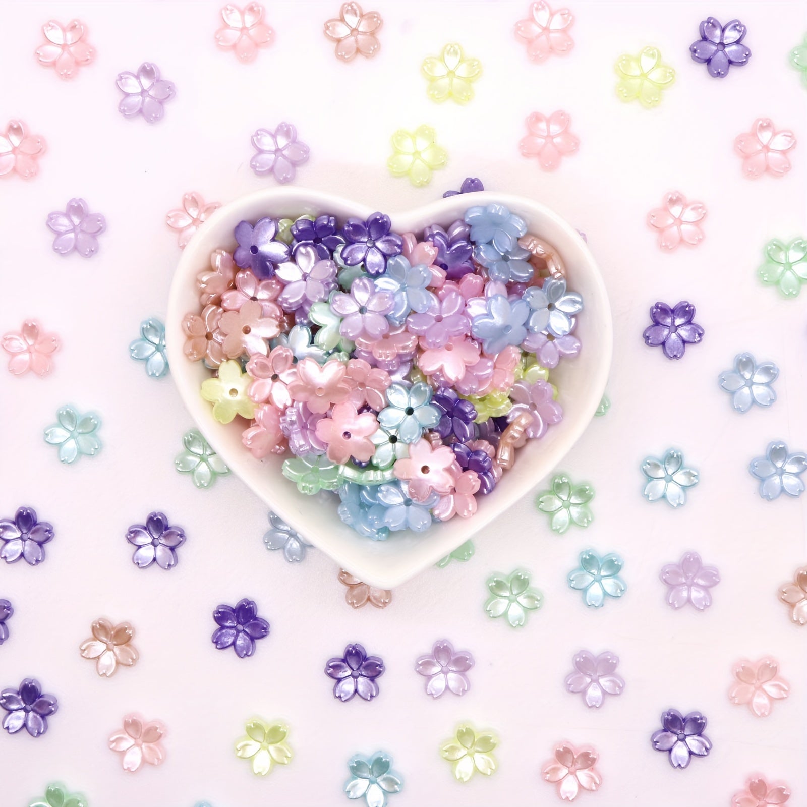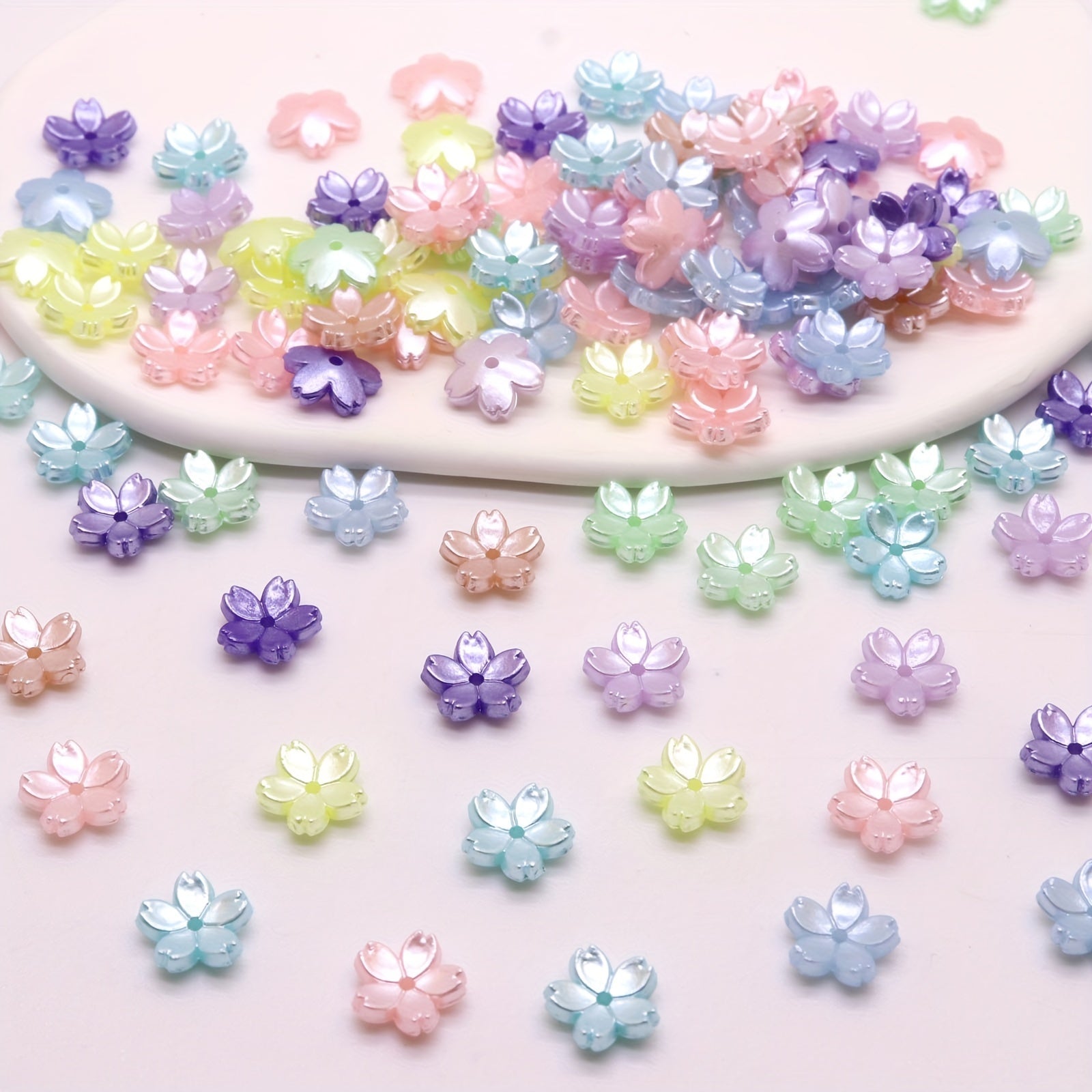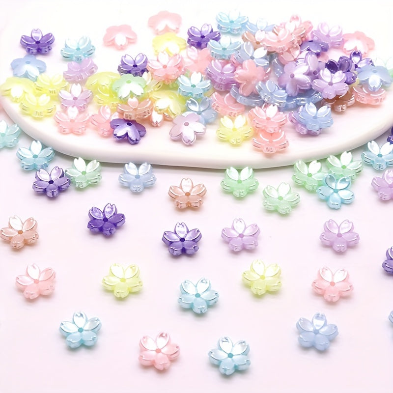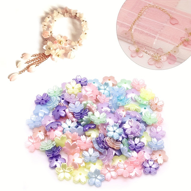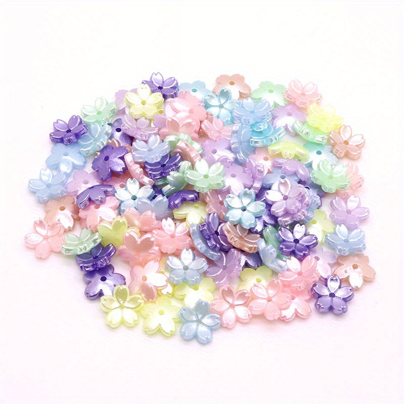 These colorful five petal flower beads are perfect for creating your own DIY earrings, bracelets, and necklaces. Made of acrylic, they add a fun and vibrant touch to your handmade jewelry.