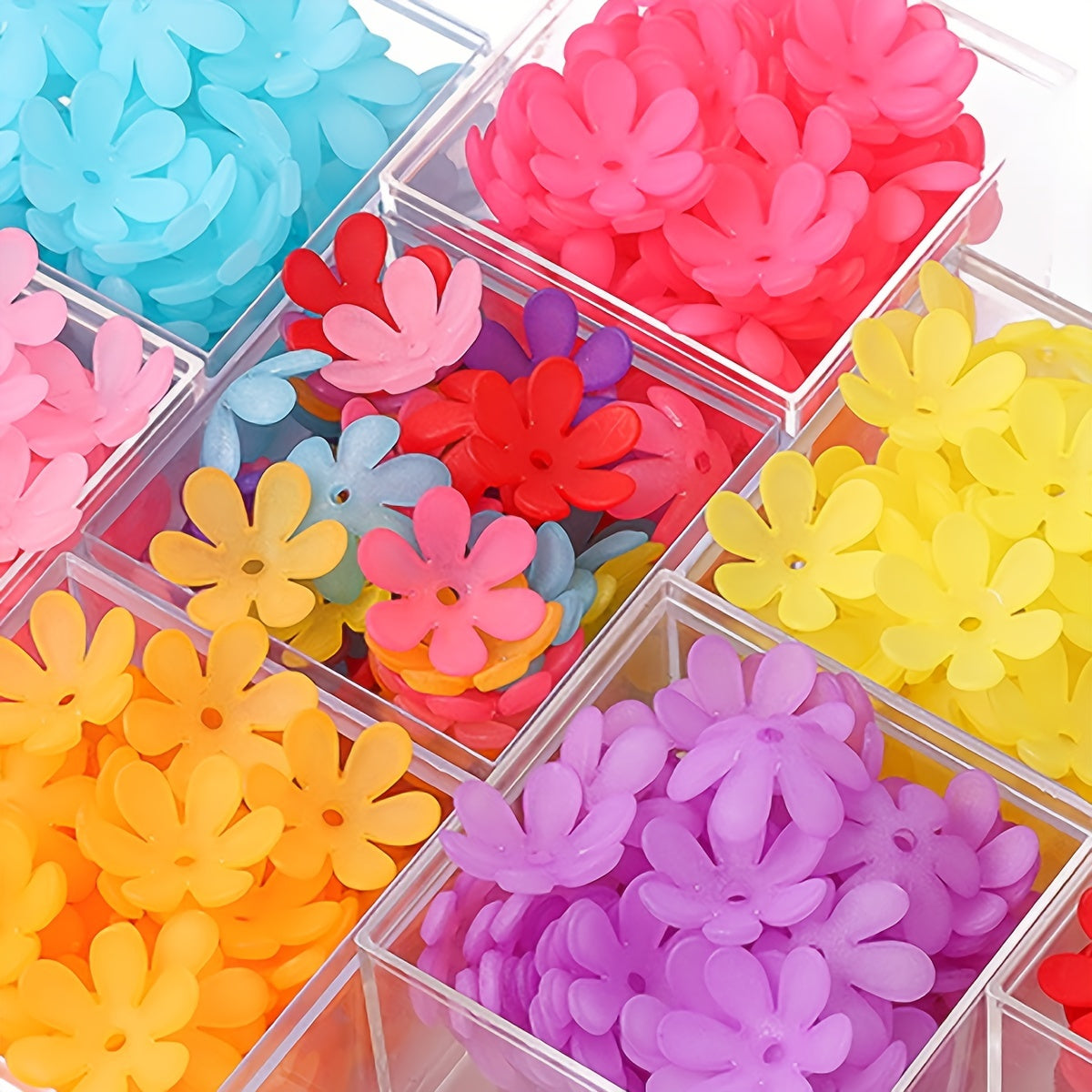 These colorful frosted acrylic charms are perfect for DIY beaded accessories. They can be used to create semi-finished jewelry pieces with a unique sun bouquet design.