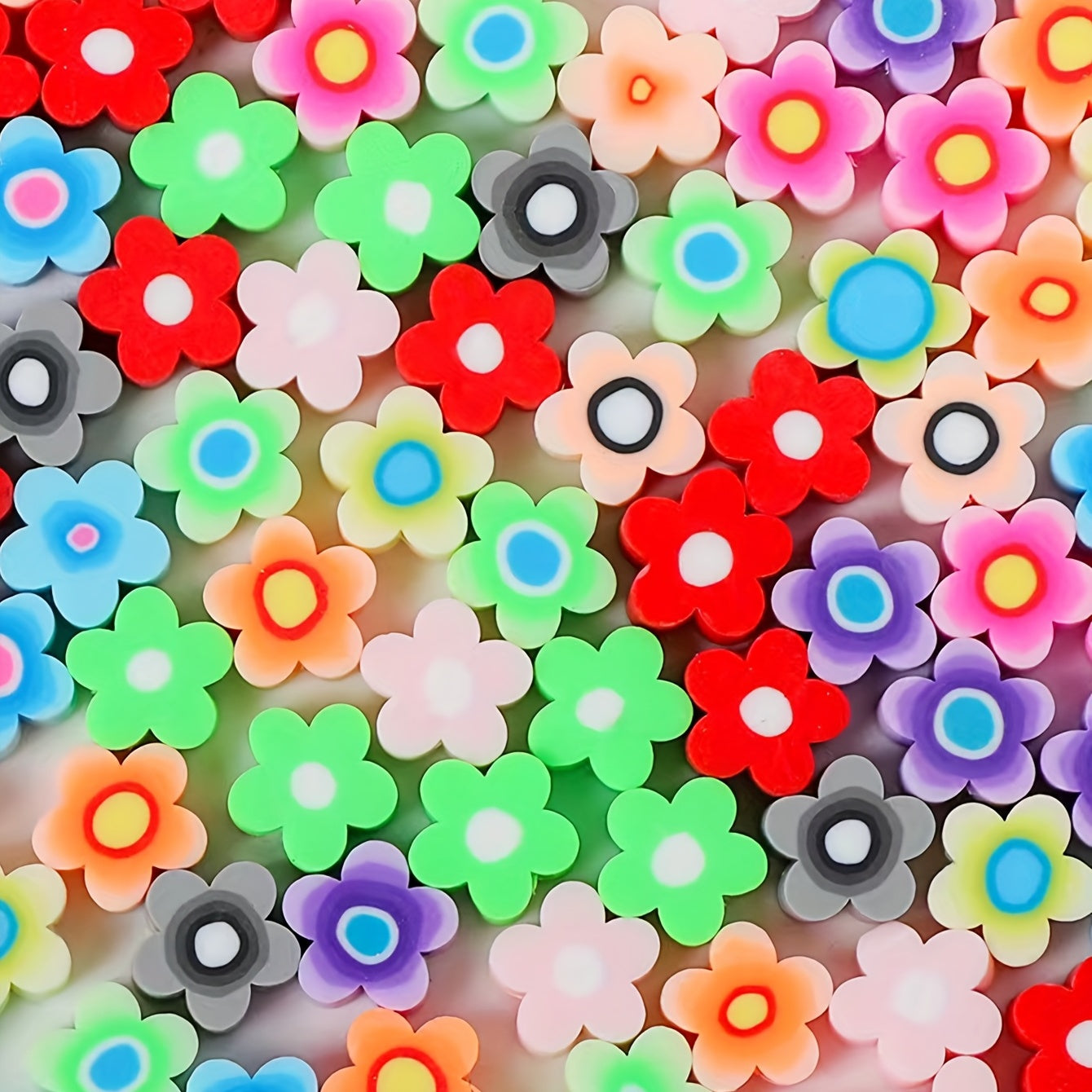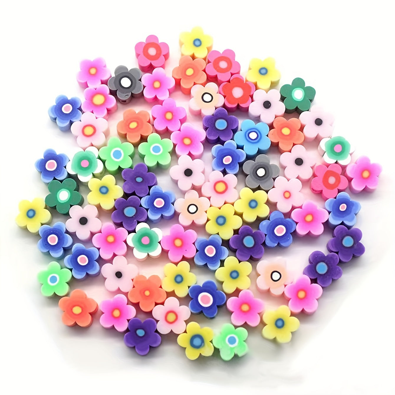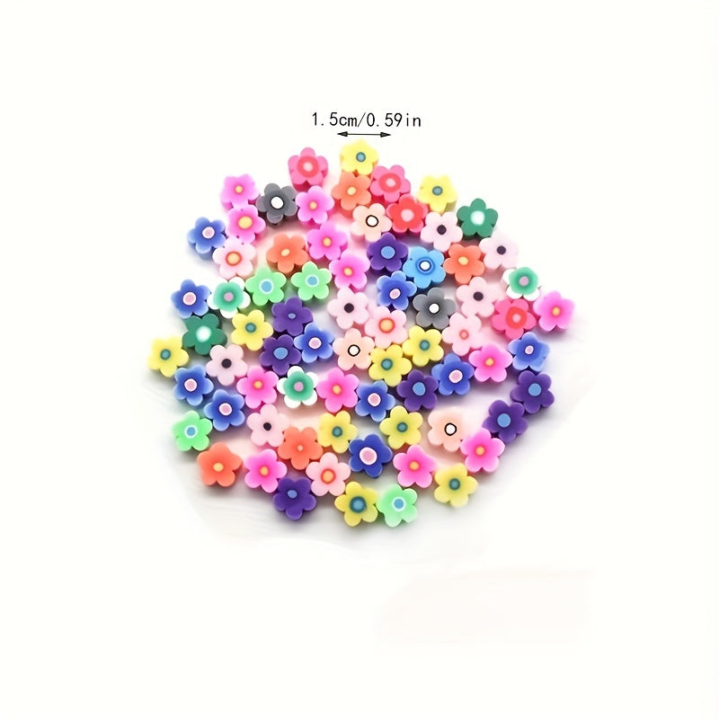 Create beautiful jewelry or craft projects with these 50 colorful soft clay flat flower beads. Perfect for DIY enthusiasts.