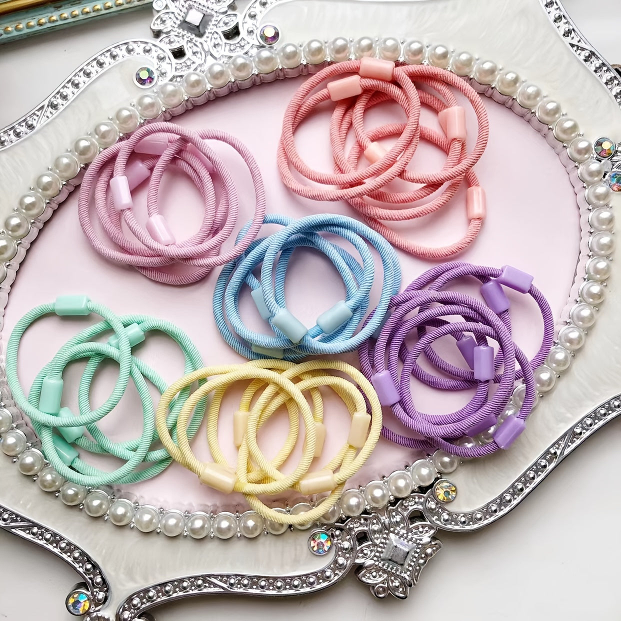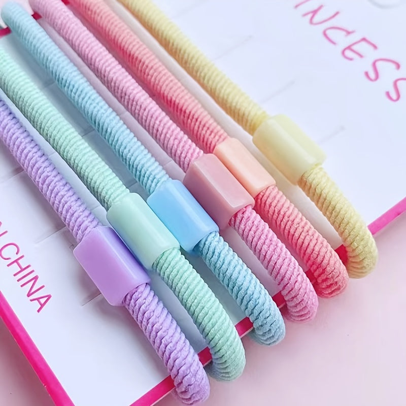 Create fun hair accessories with this set of 50 high elastic macaron candy threaded hair ties. Perfect for DIY projects or making unique hair accessories for children.