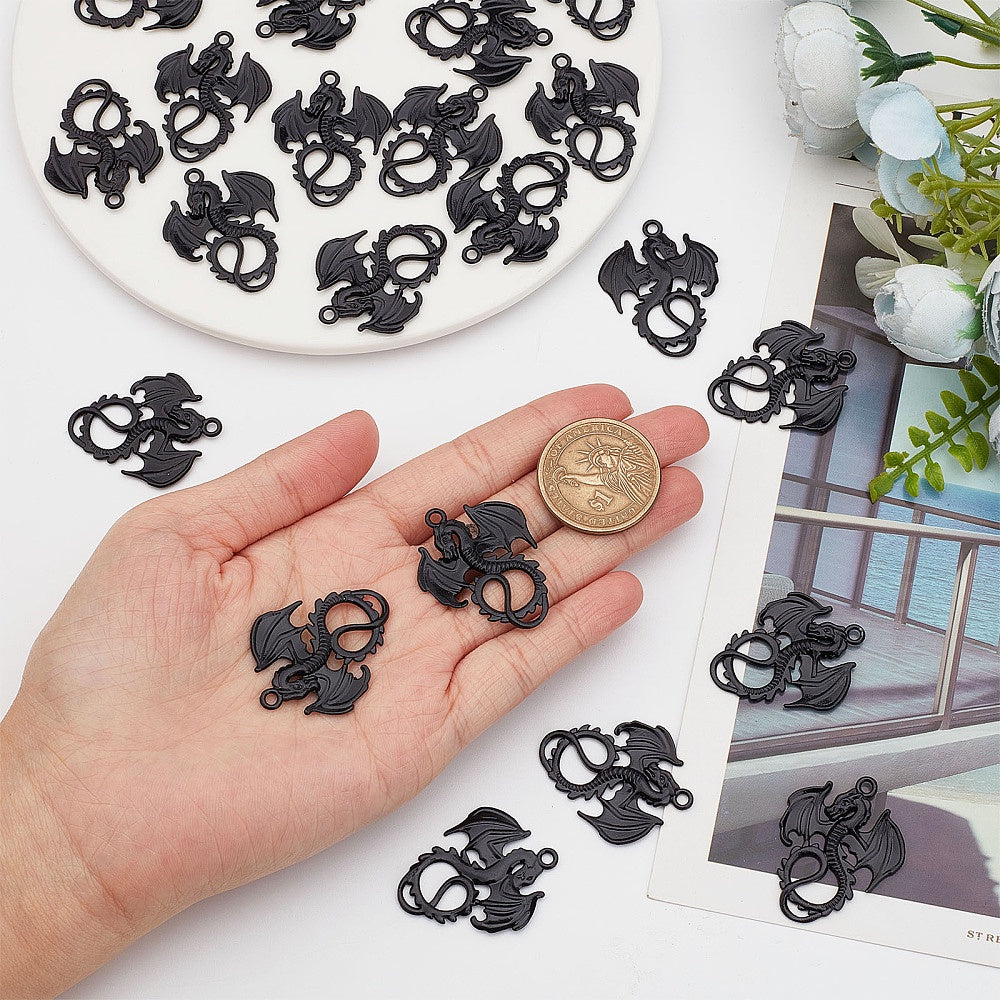 Add a touch of mythical elegance to your jewelry creations with these electroplated flying dragon pendants. Perfect for making courageous earrings, necklaces, and bracelets.