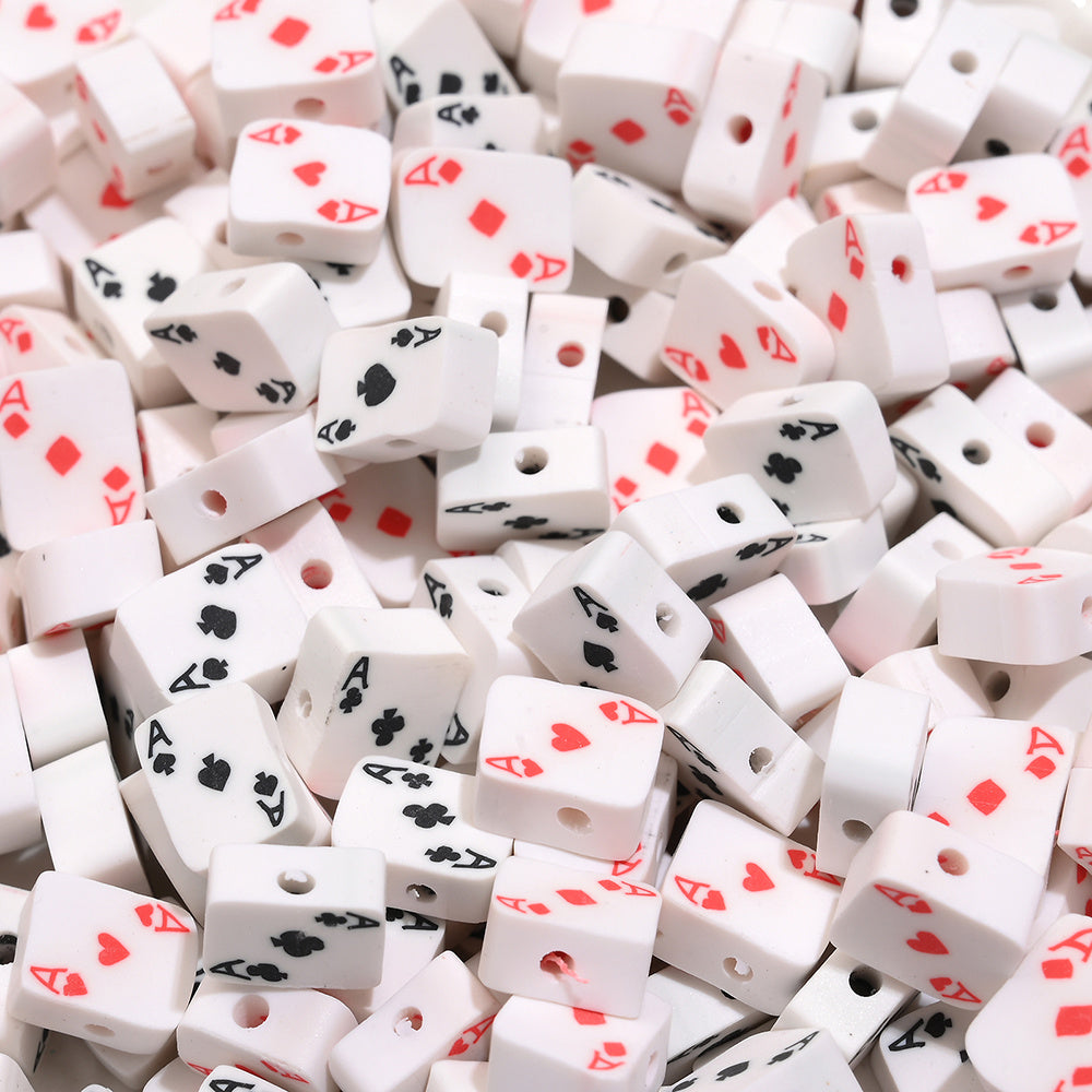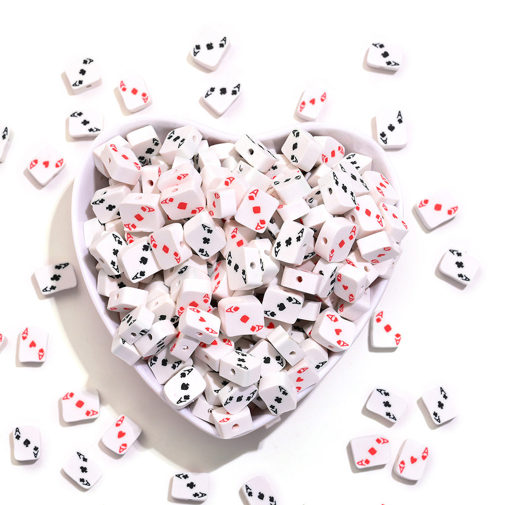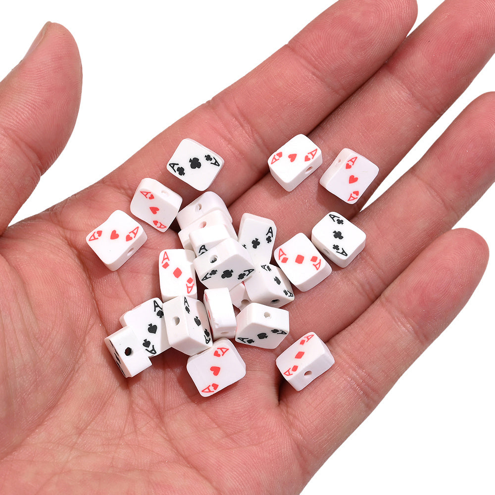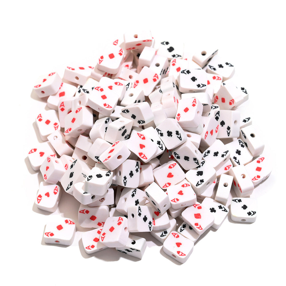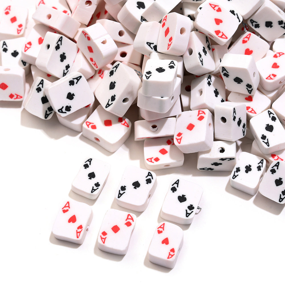 Enhance your jewelry-making projects with this set of 50 funny poker clay beads mix spacer beads. Ideal for creating unique and playful ornaments and accessories.