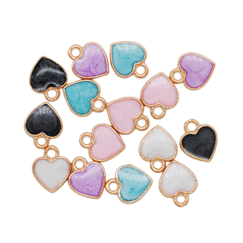 Add a touch of elegance to your jewelry creations with these golden enamel heart charms. Perfect for DIY projects, these heart-shaped connector pendants are ideal for crafting unique accessories.