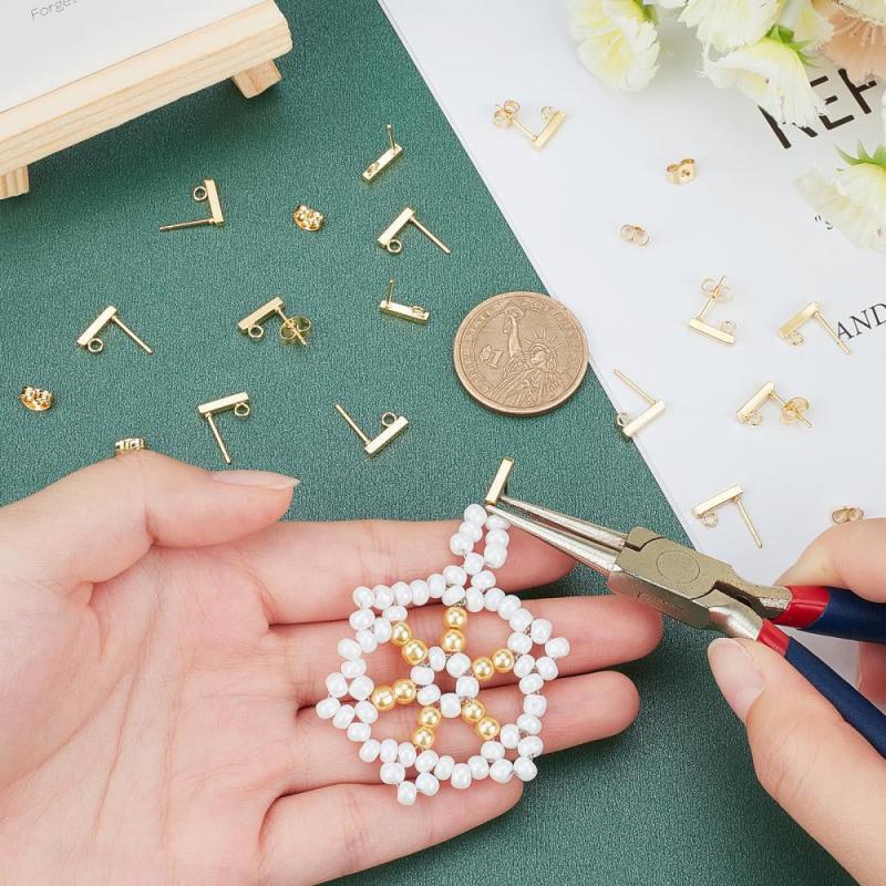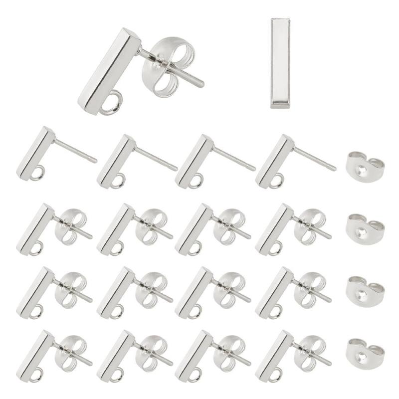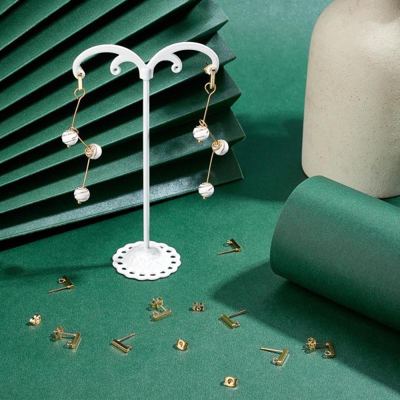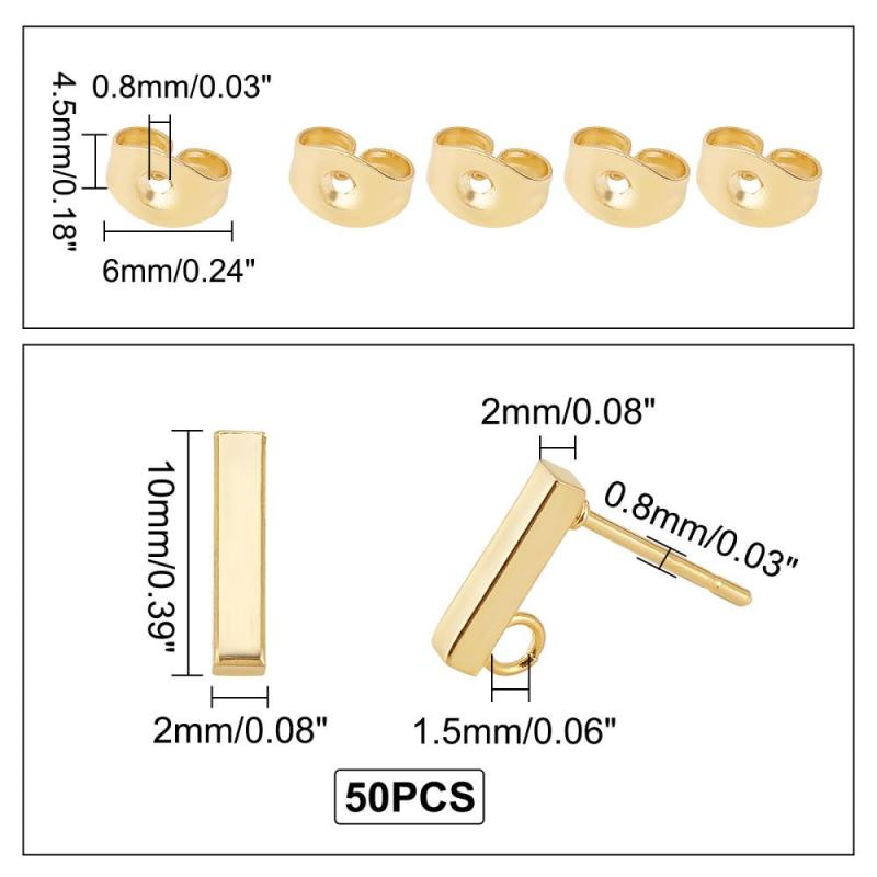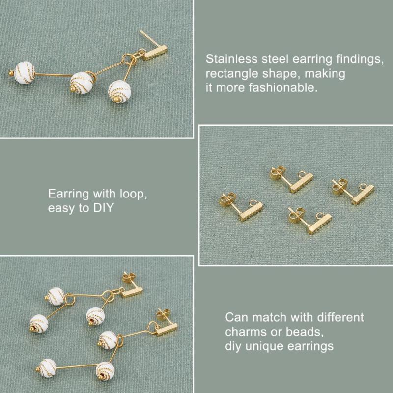 Create your own stylish earrings with these golden rectangle stud earring settings. Made from stainless steel, they feature loop and ear nuts with a 0.8mm pin, perfect for DIY jewelry making.
