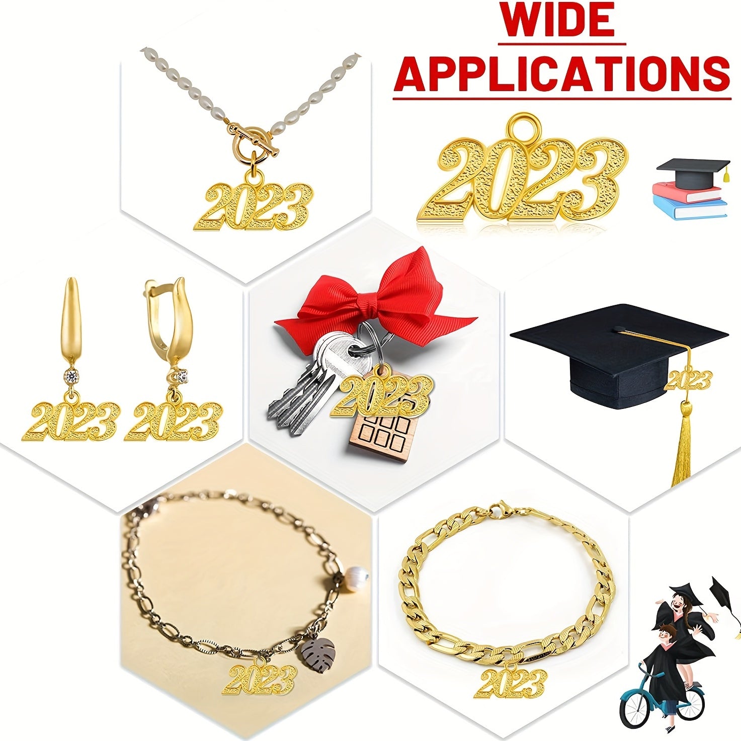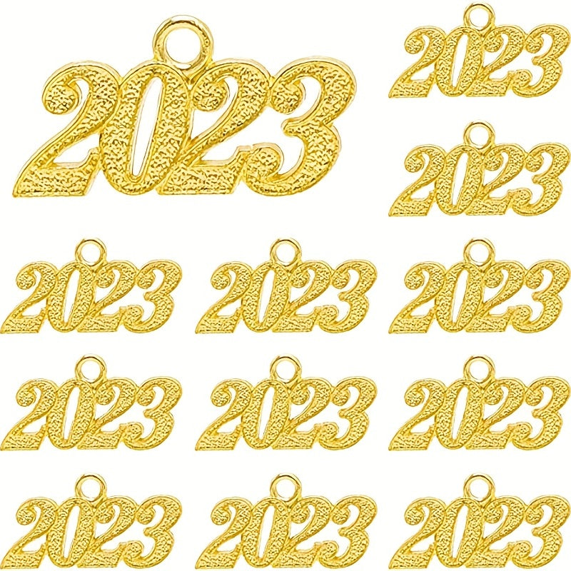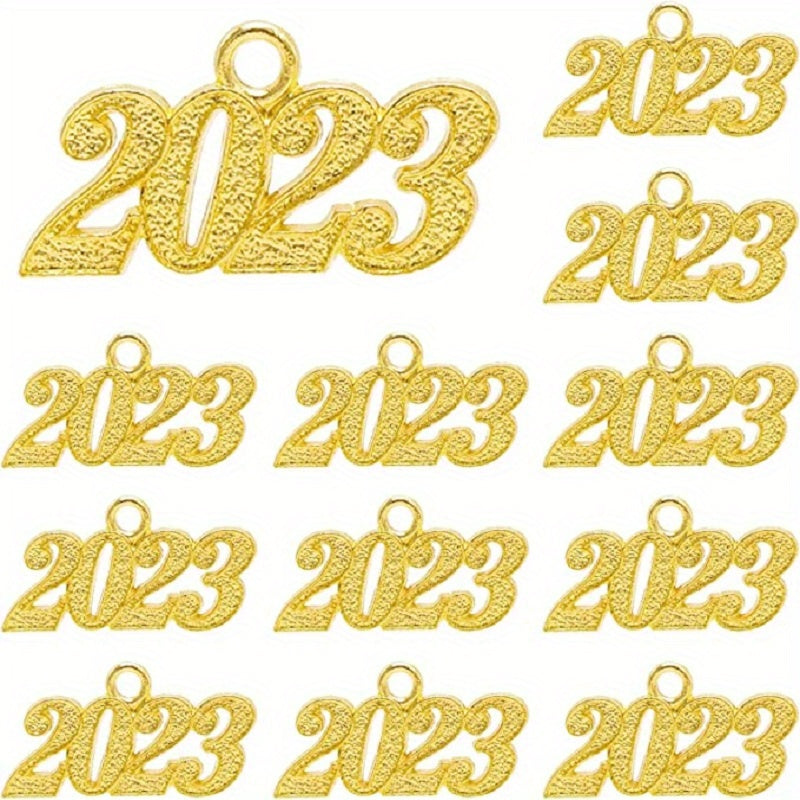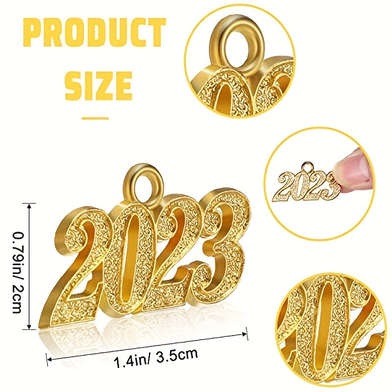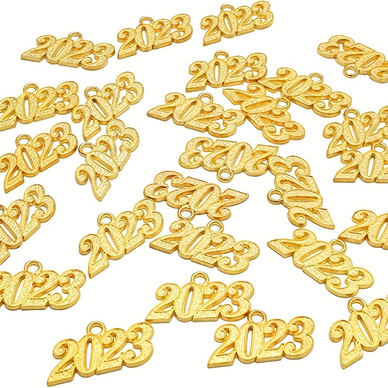 Add a touch of elegance to your DIY projects with these golden year hanging charms. Perfect for graduations and celebrations. Each set includes 50 charms.