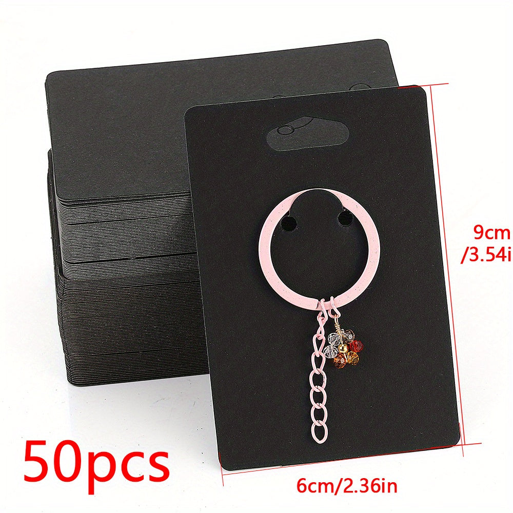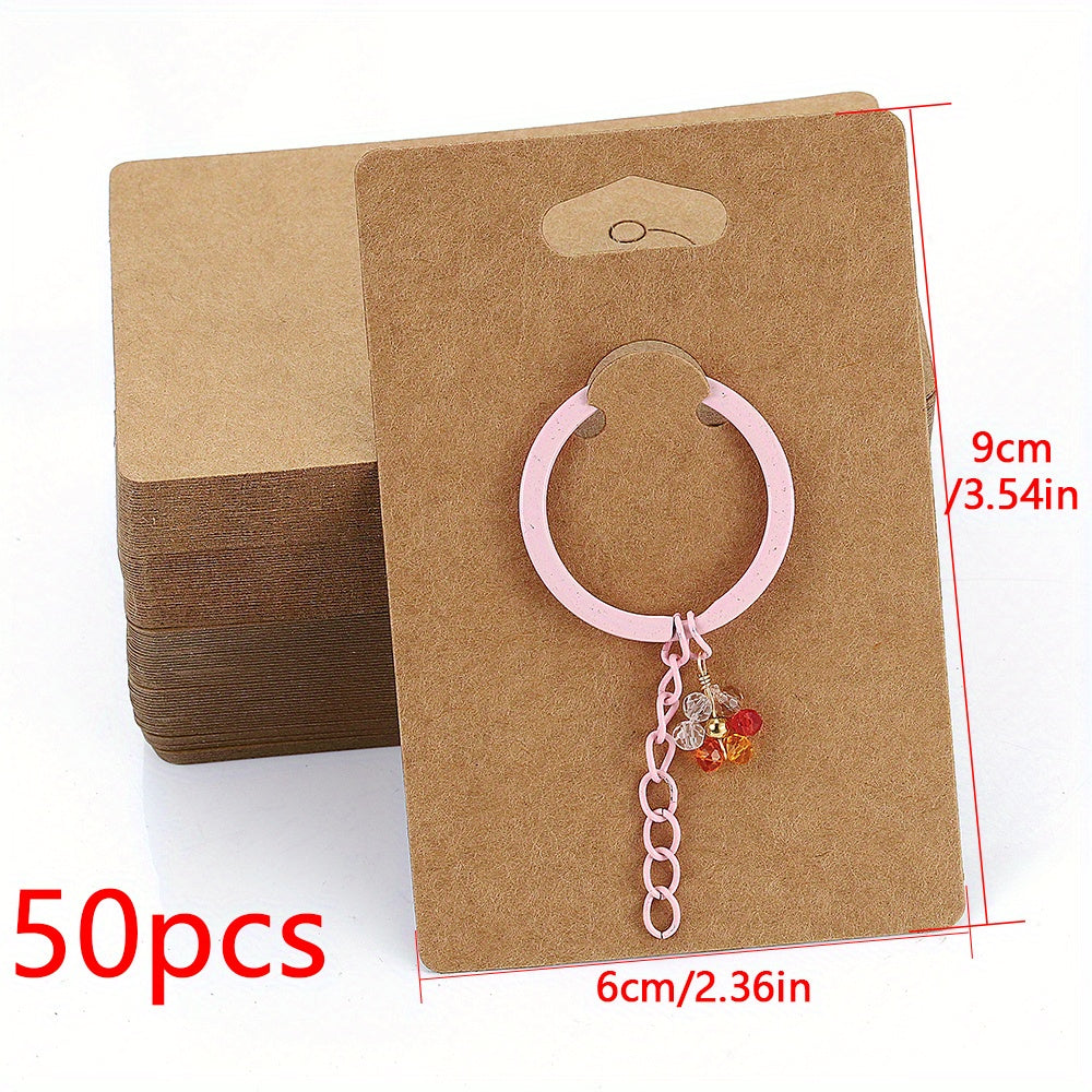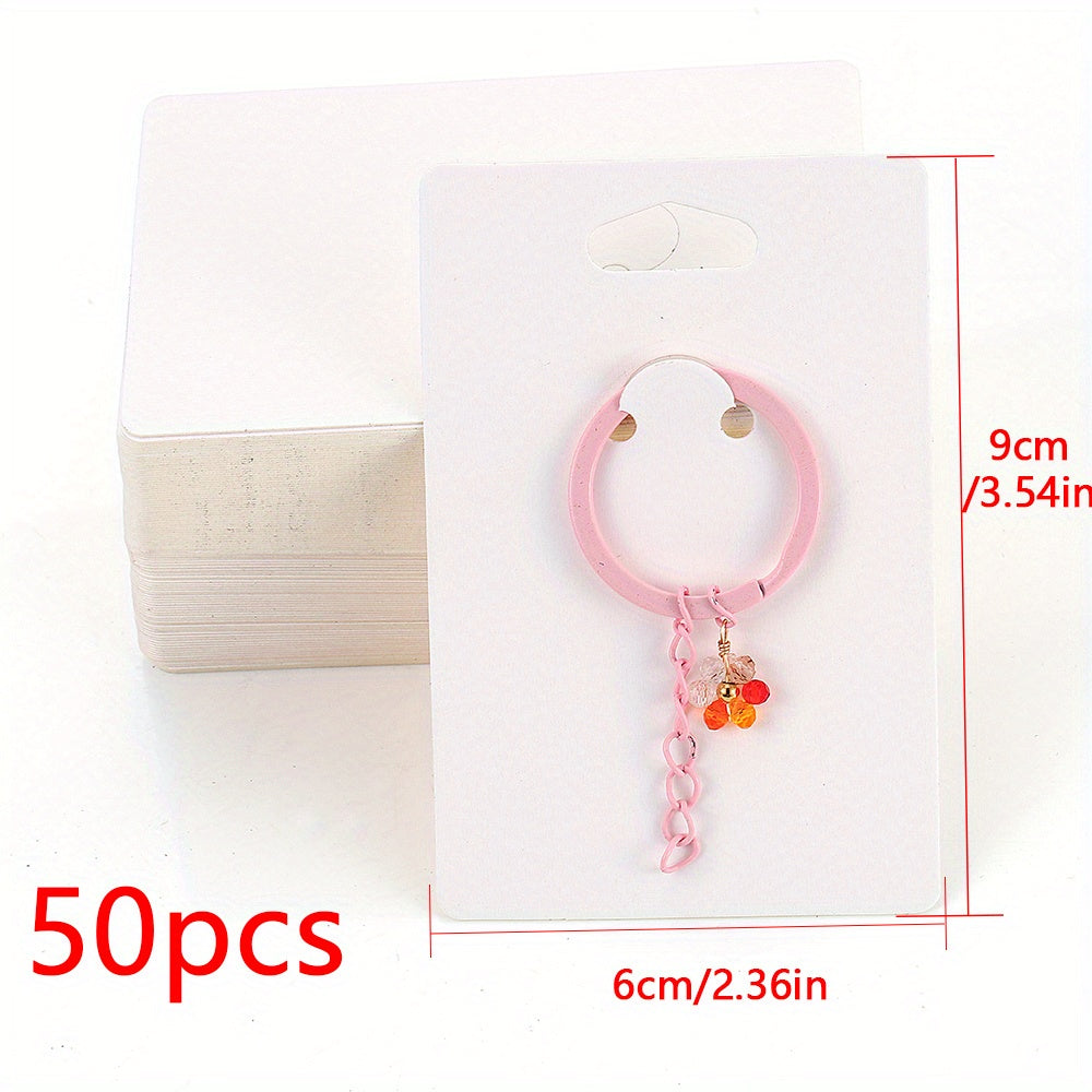 These keychain display cards are perfect for showcasing keyrings and jewelry. Made of durable cardboard, they provide a professional and organized way to present your products.