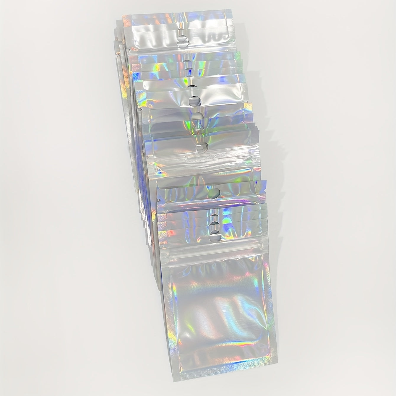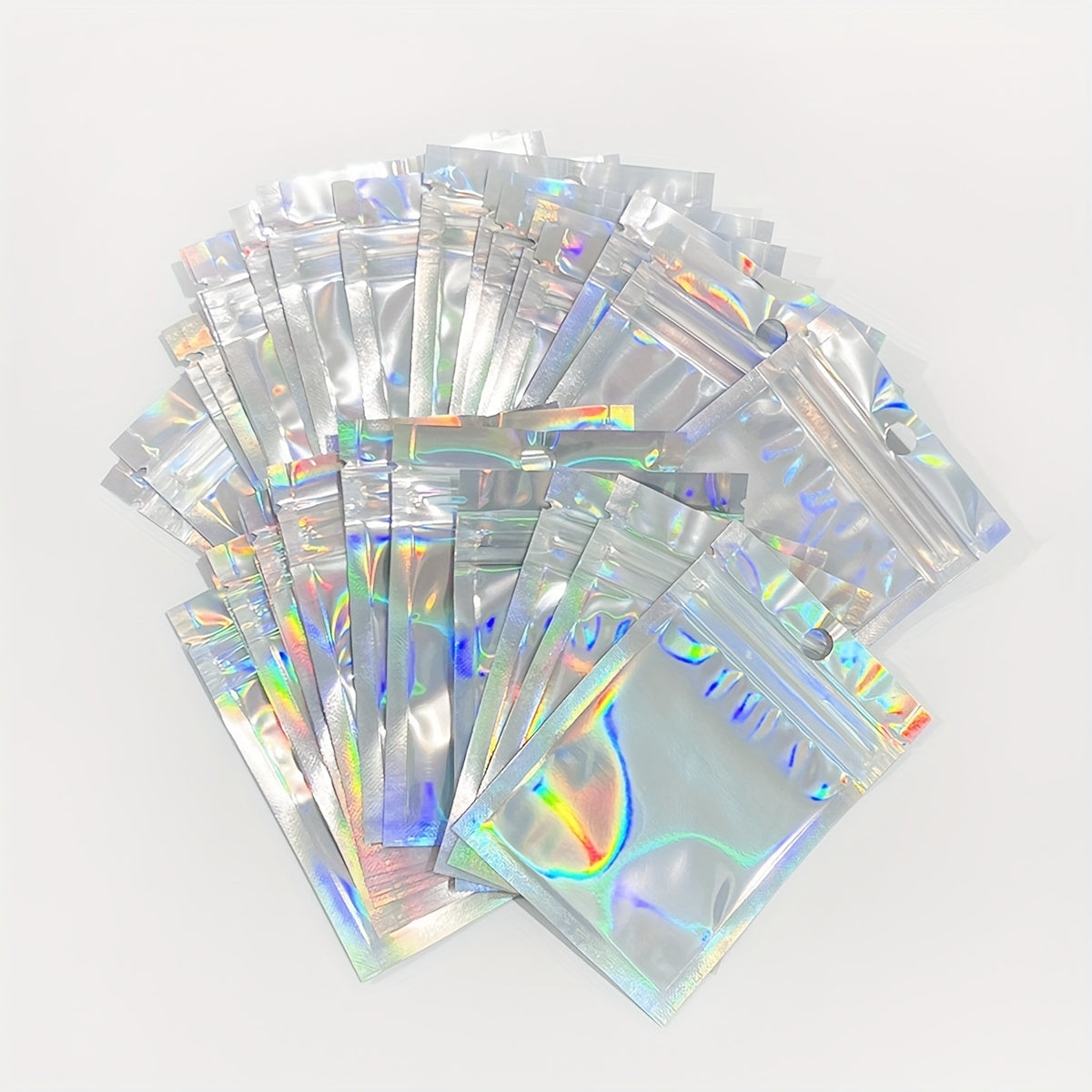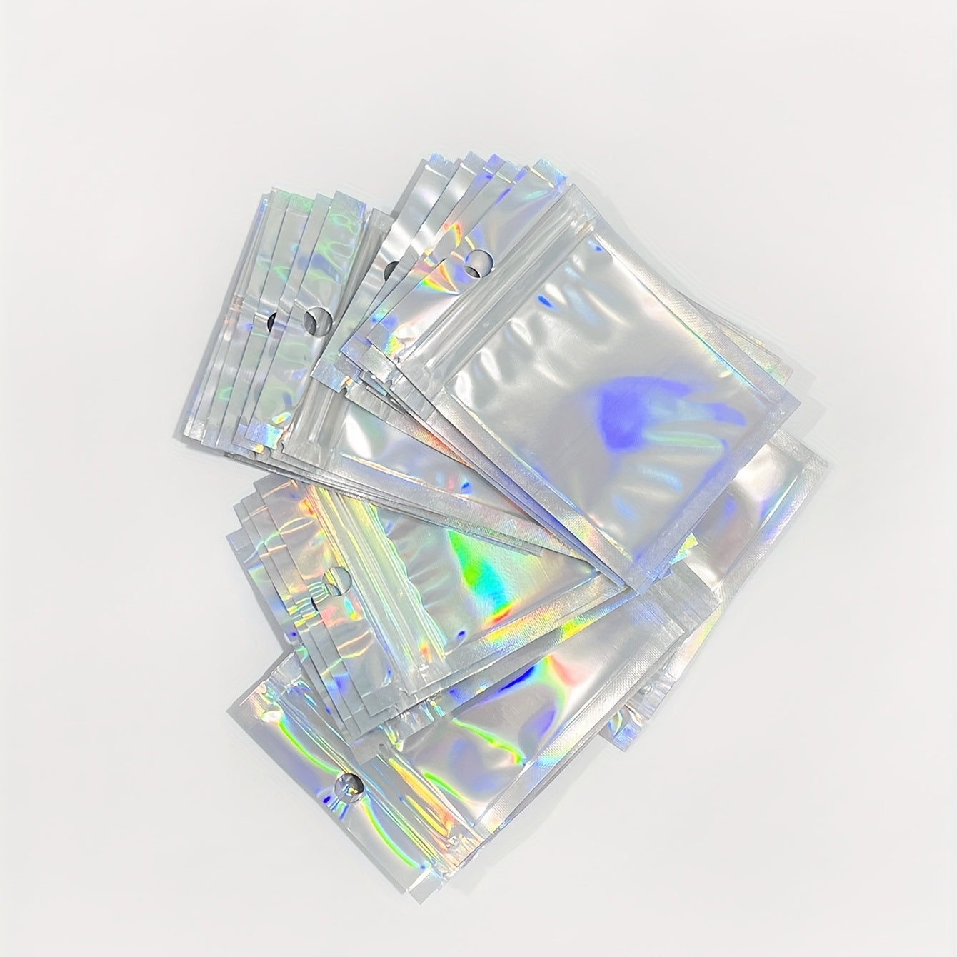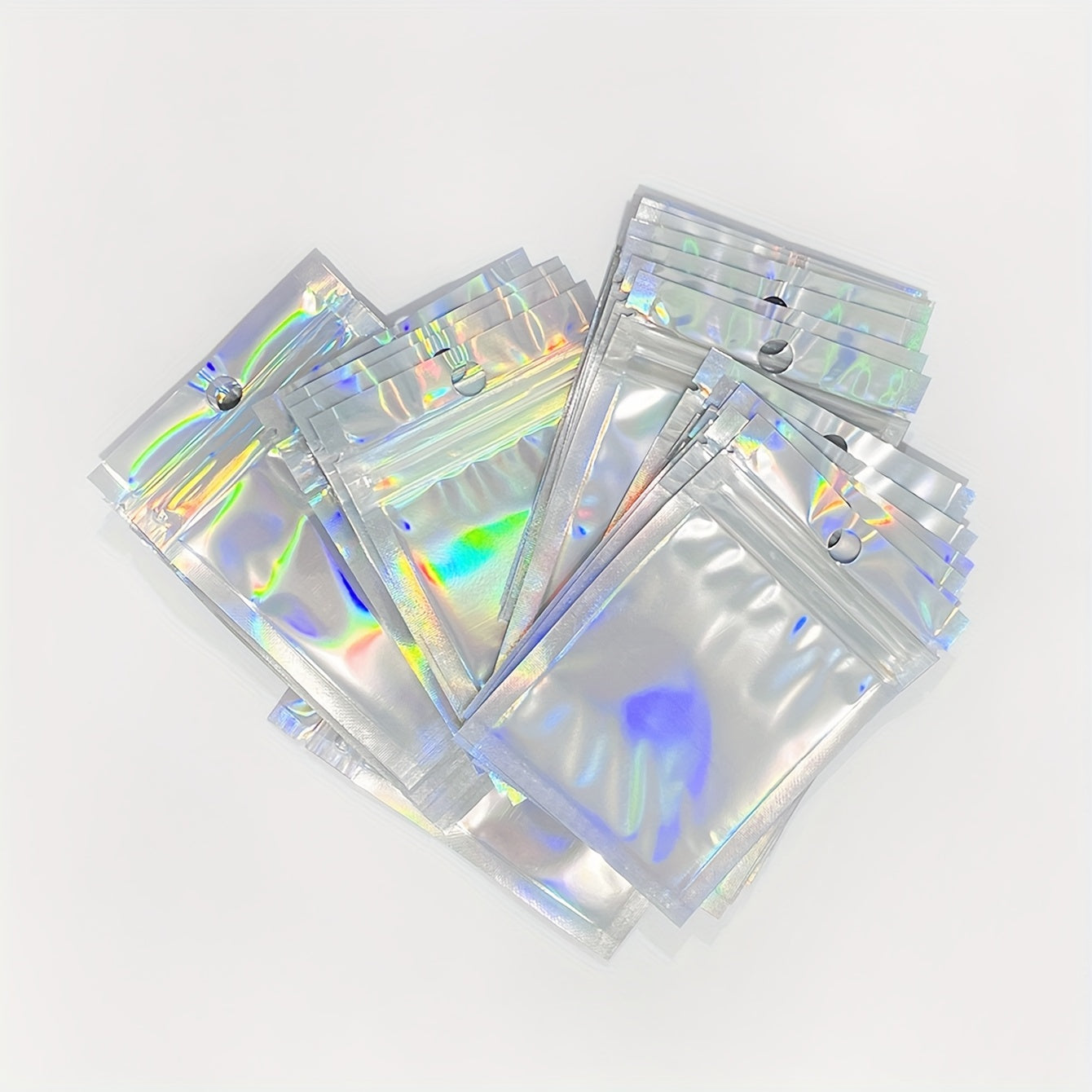 Add a touch of elegance to your packaging with these 50pcs laser pearlescent ziplock sealing bags. Perfect for storing and showcasing jewelry items, these reusable bags are dustproof and come in a beautiful rainbow finish.