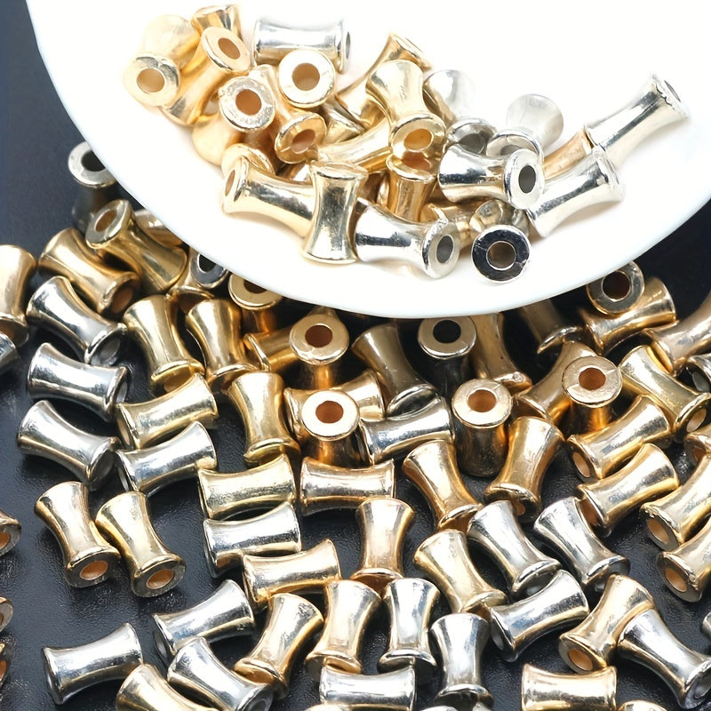Enhance your jewelry-making projects with this set of 50 golden and silver CCB bamboo beads. Perfect for creating unique and stylish pieces.