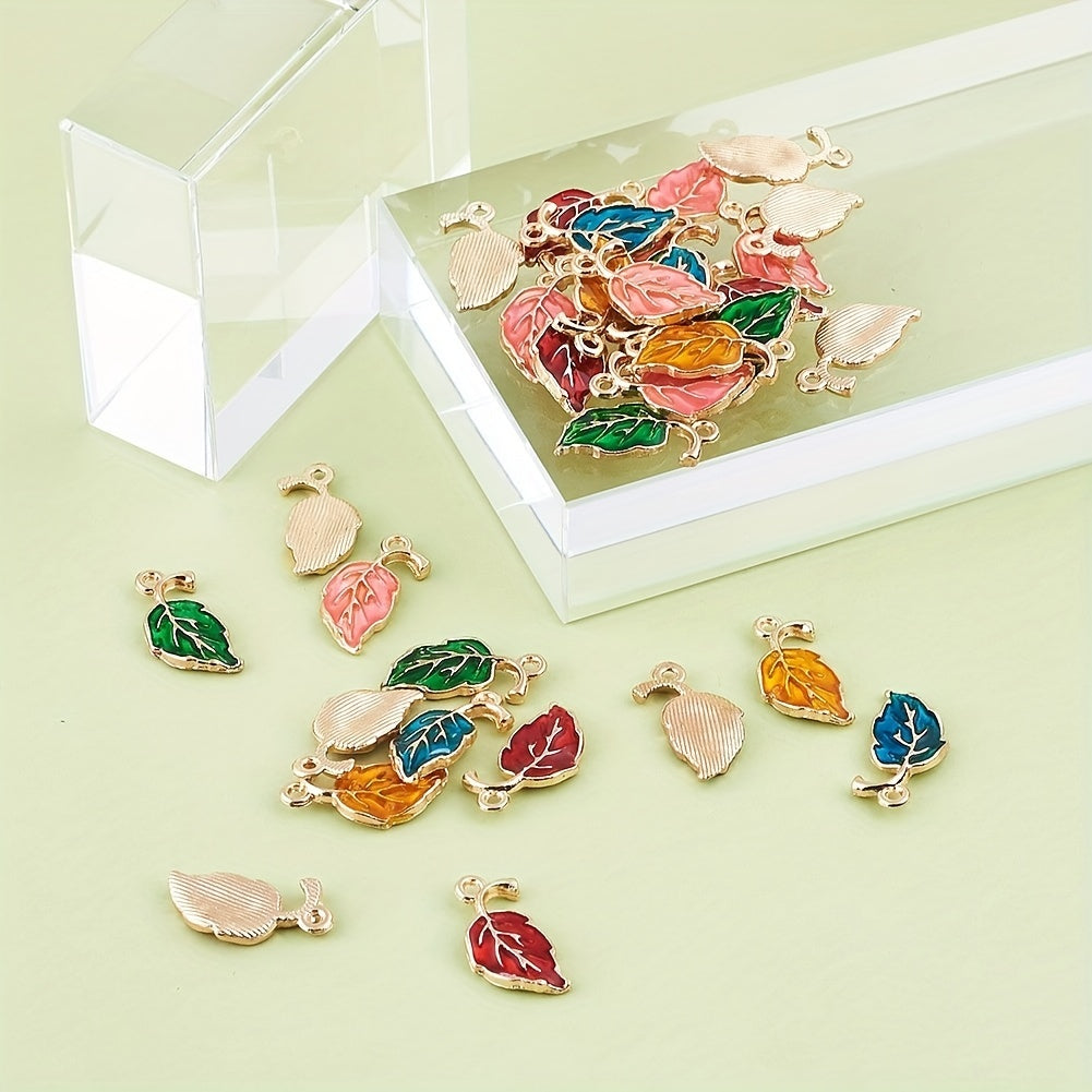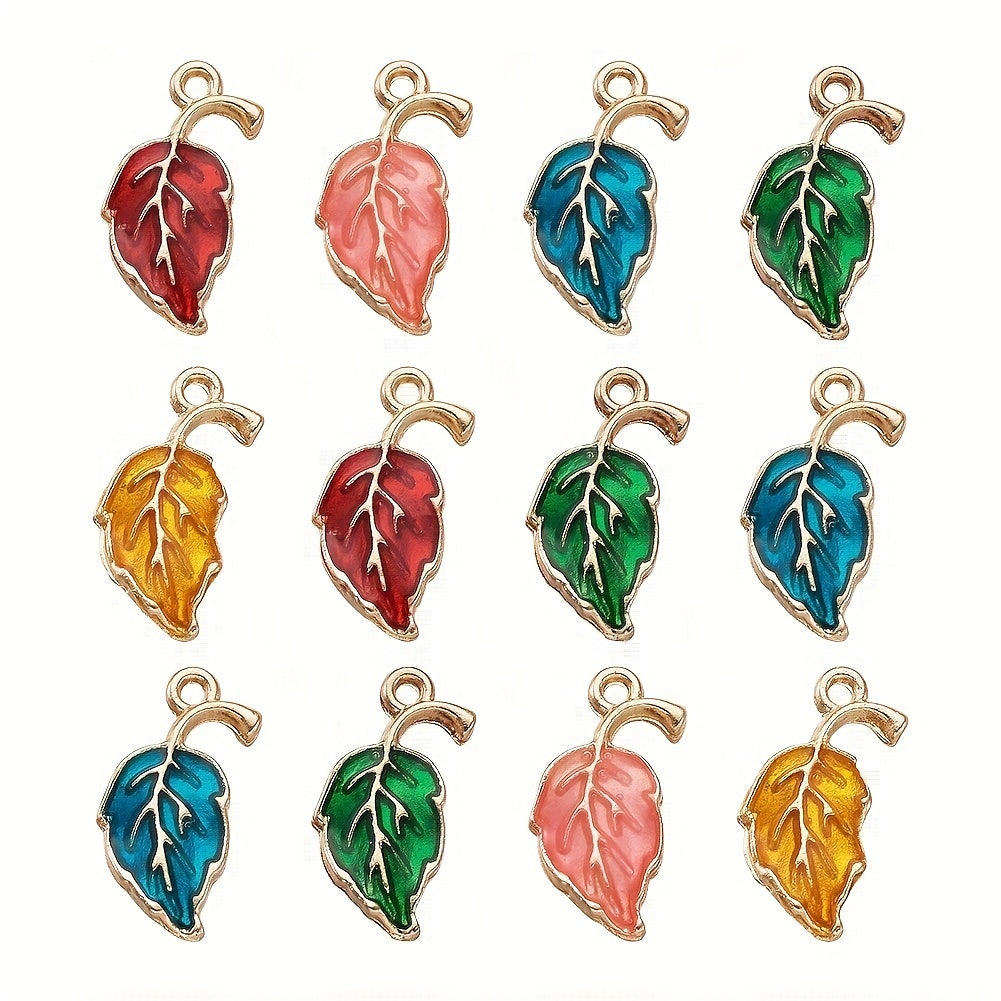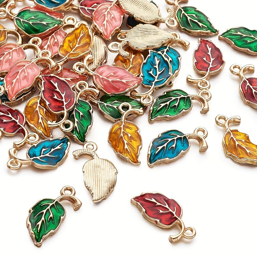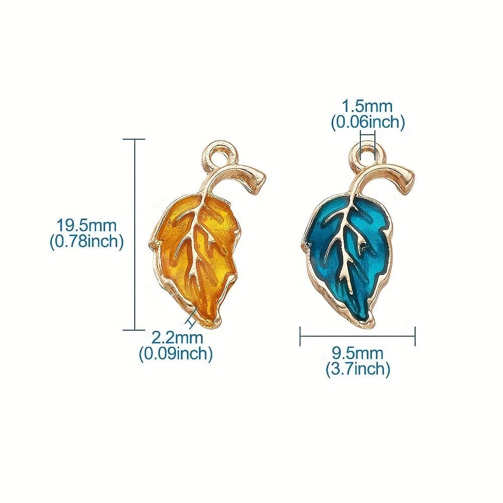 Enhance your jewelry collection with these 50pcs mixed leaf golden alloy pendants. Perfect for making DIY earrings, bracelets, necklaces, and other accessories. Each pendant has a hole size of 1.5mm.