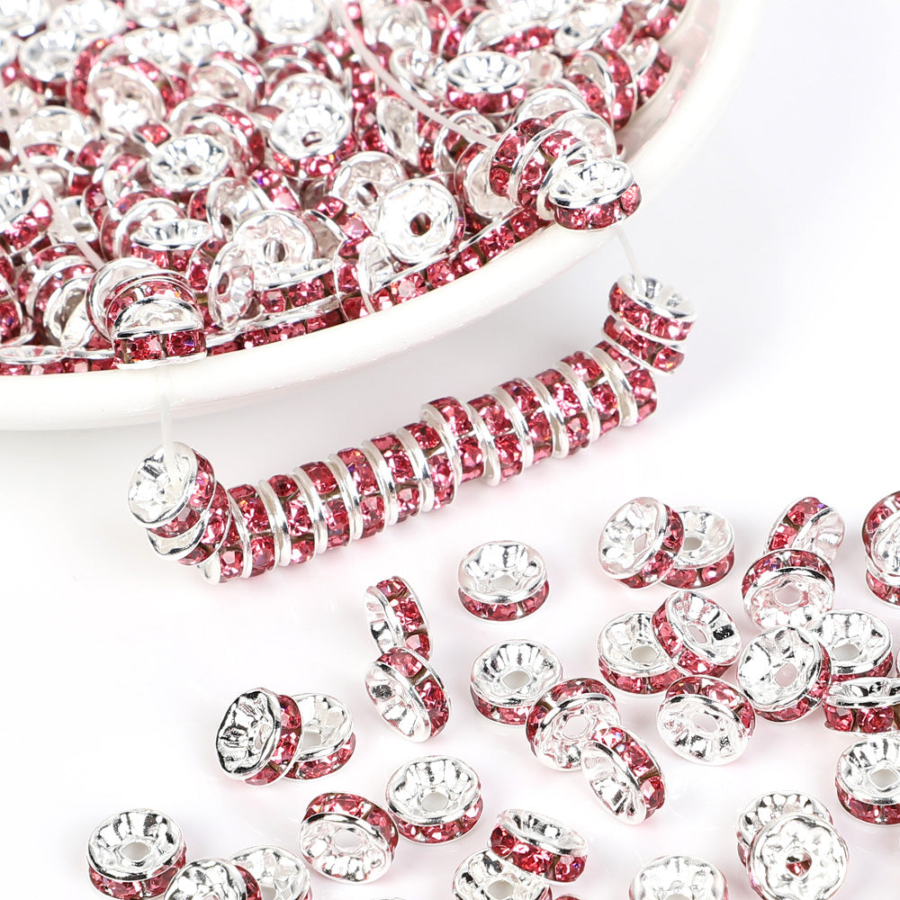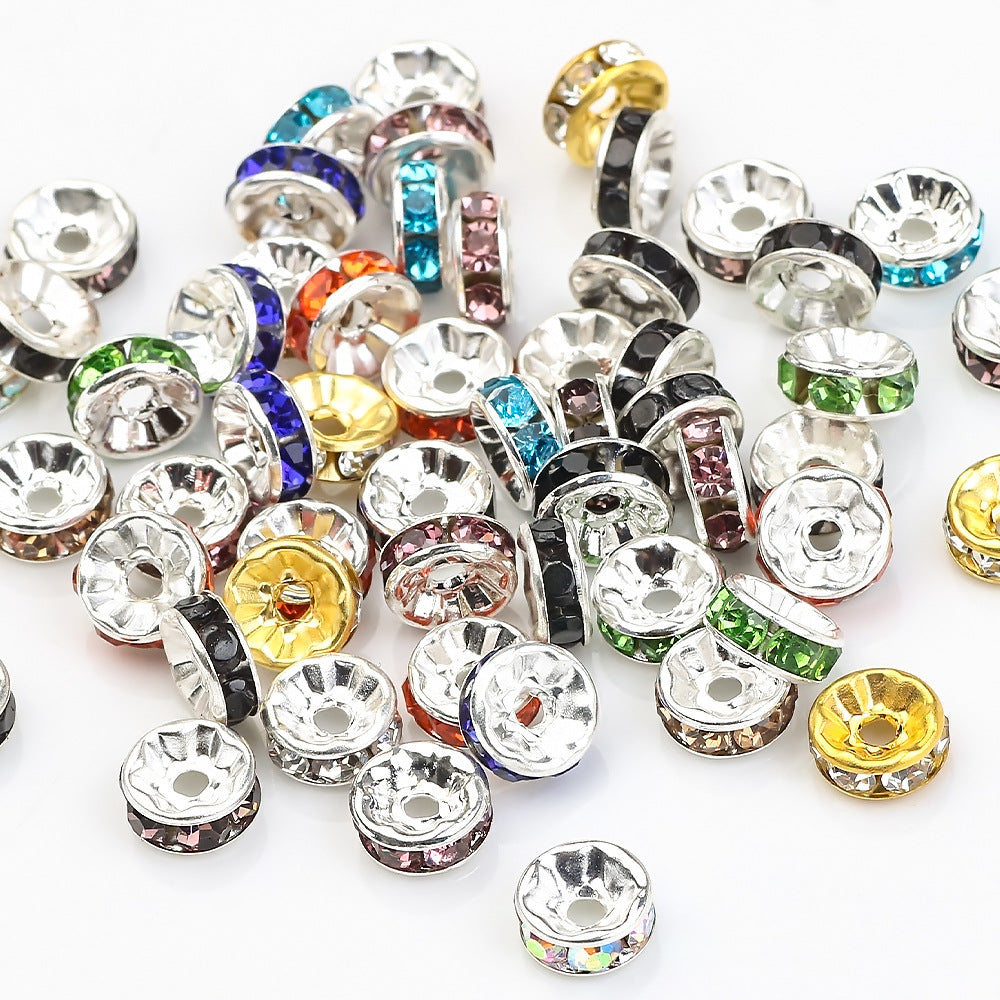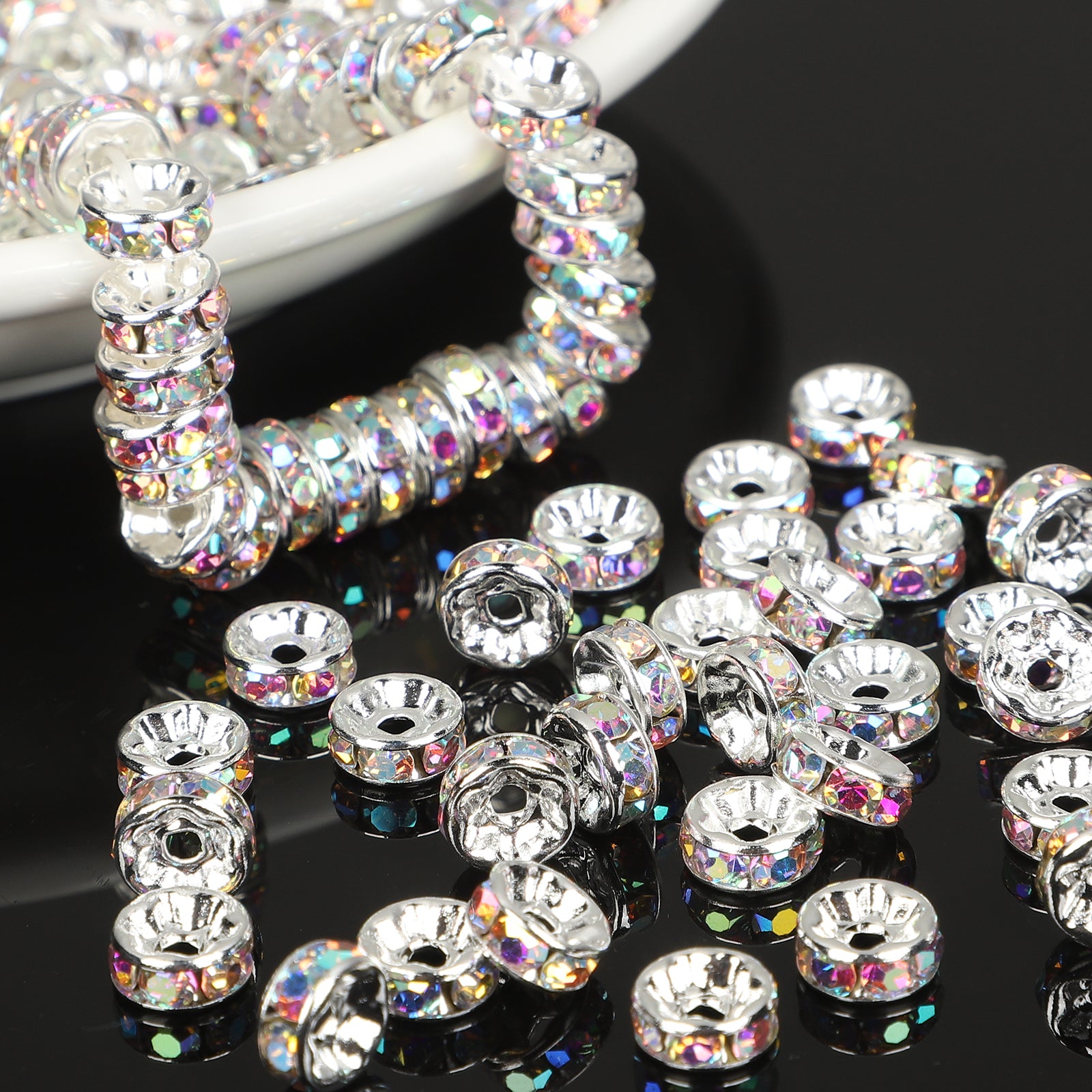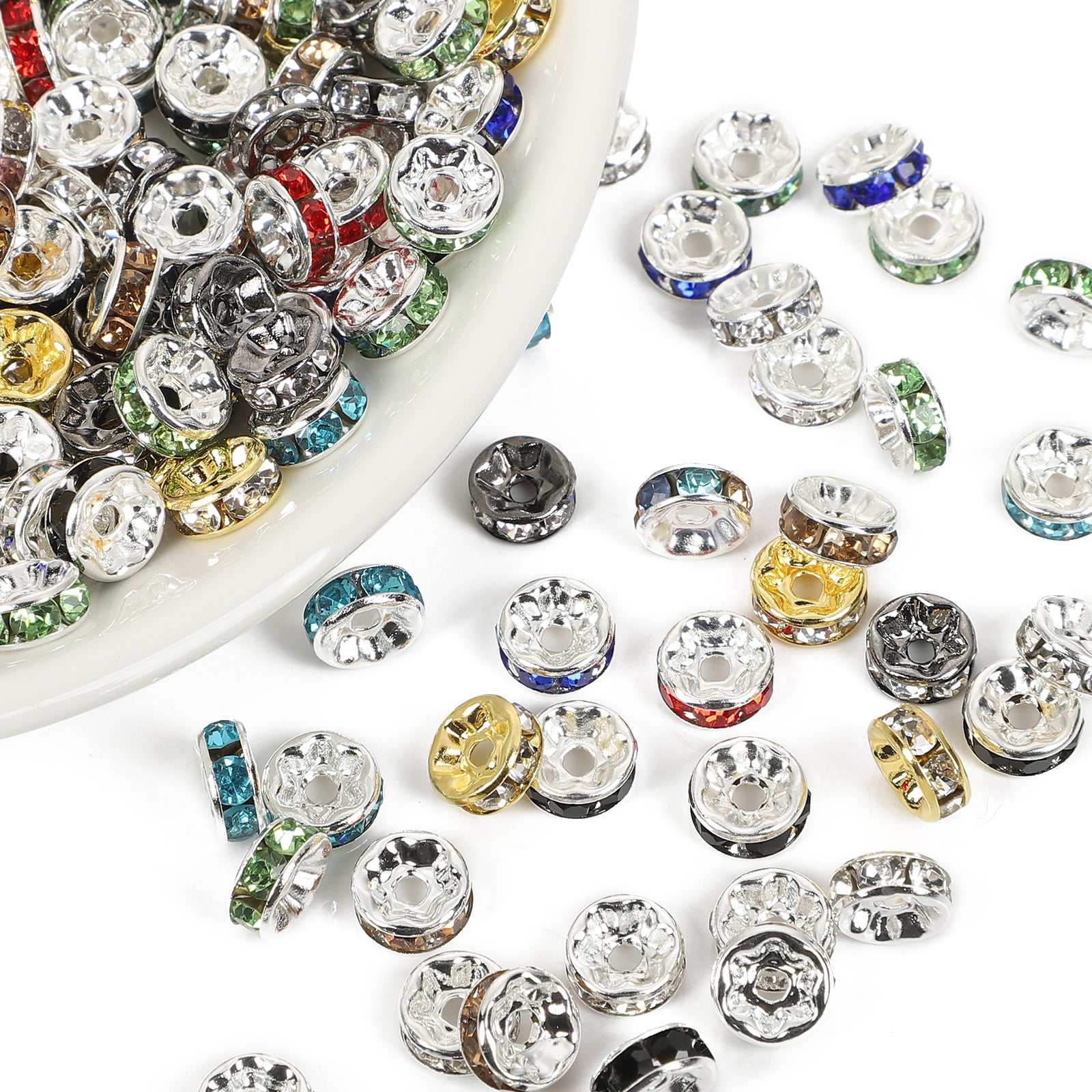 Create stunning jewelry pieces with this set of 50 mixed stone rhinestone rondelle crystal round spacer beads. Perfect for bracelets, necklaces, and other accessories.
