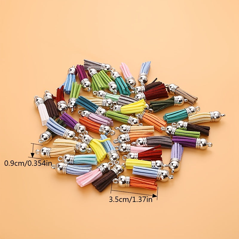 This bag contains 50 assorted tassel accessories in a variety of colors and styles. Perfect for adding a fun touch to your crafts and projects.