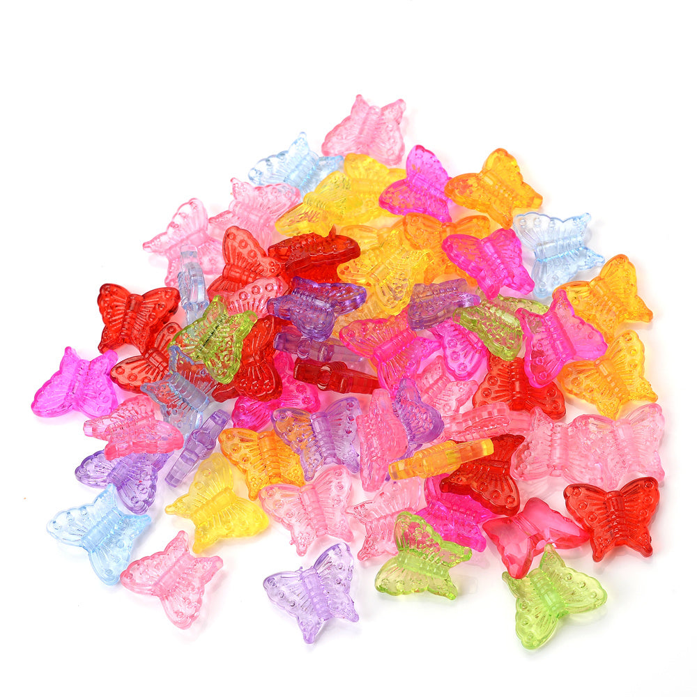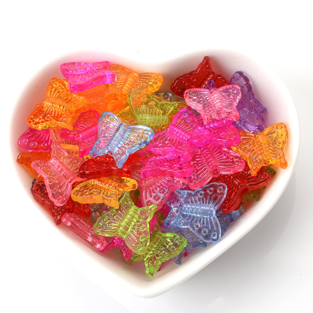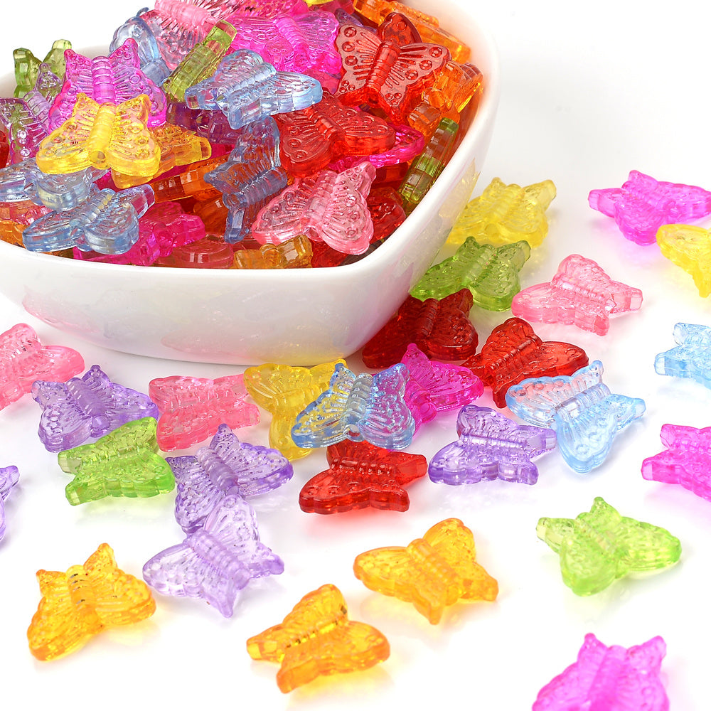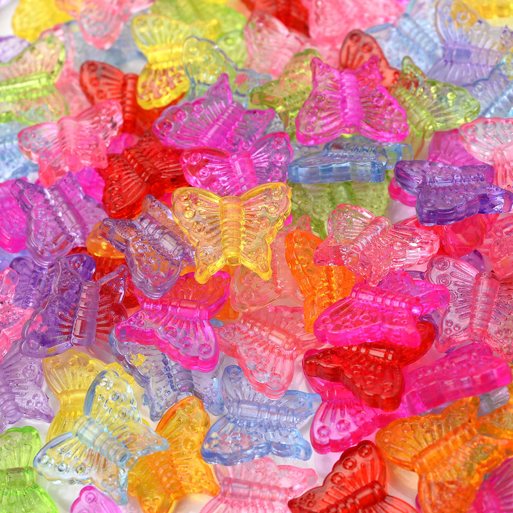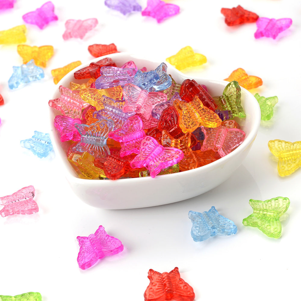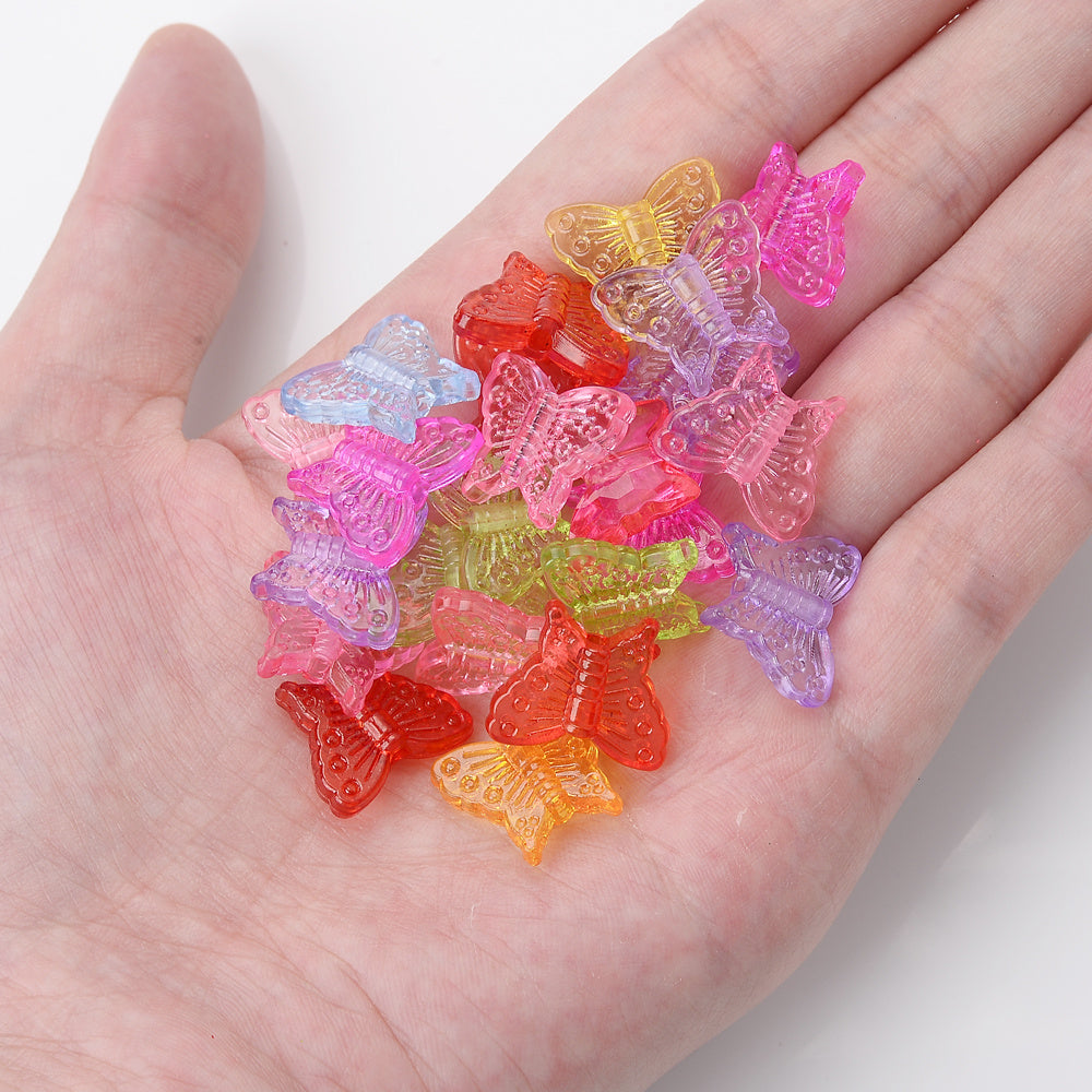 These acrylic butterfly beads are perfect for making your own jewelry such as bracelets, necklaces, and hairpins. They come in a mixed set of transparent colors.